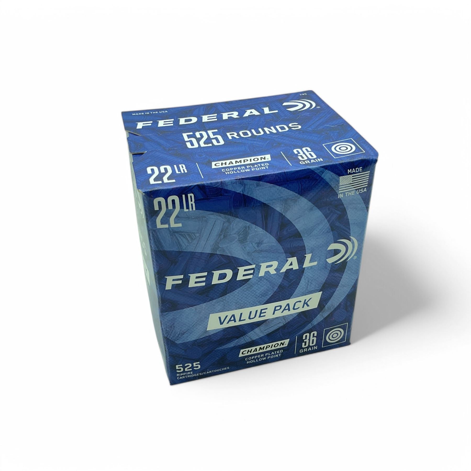 Federal Champion .22 LR, 36 Grain Copper Plated HP Ammunition, 525 Rounds