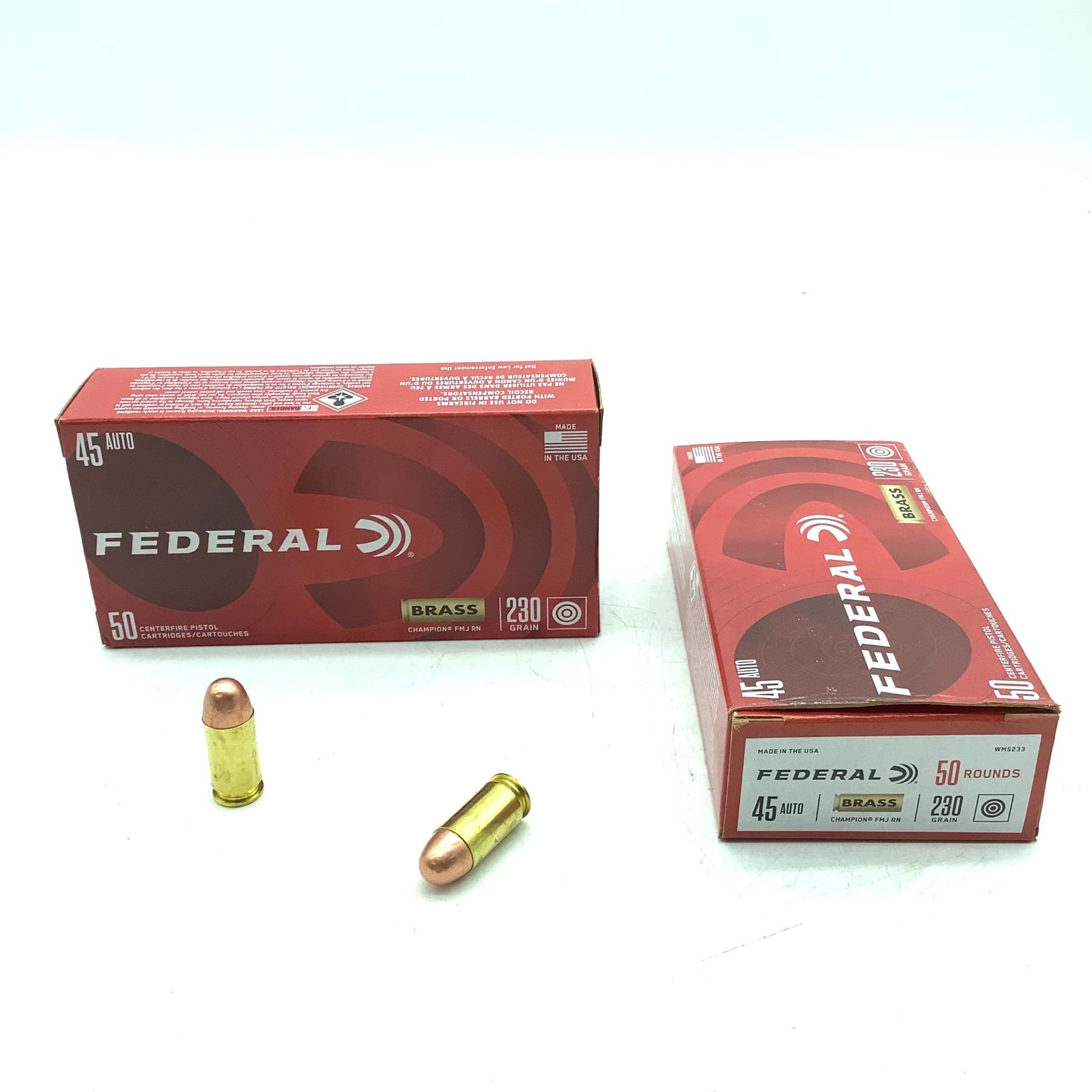 Federal Champion Brass 45 Auto 230 Grain FMJ RN Ammunition, 100 Rounds
