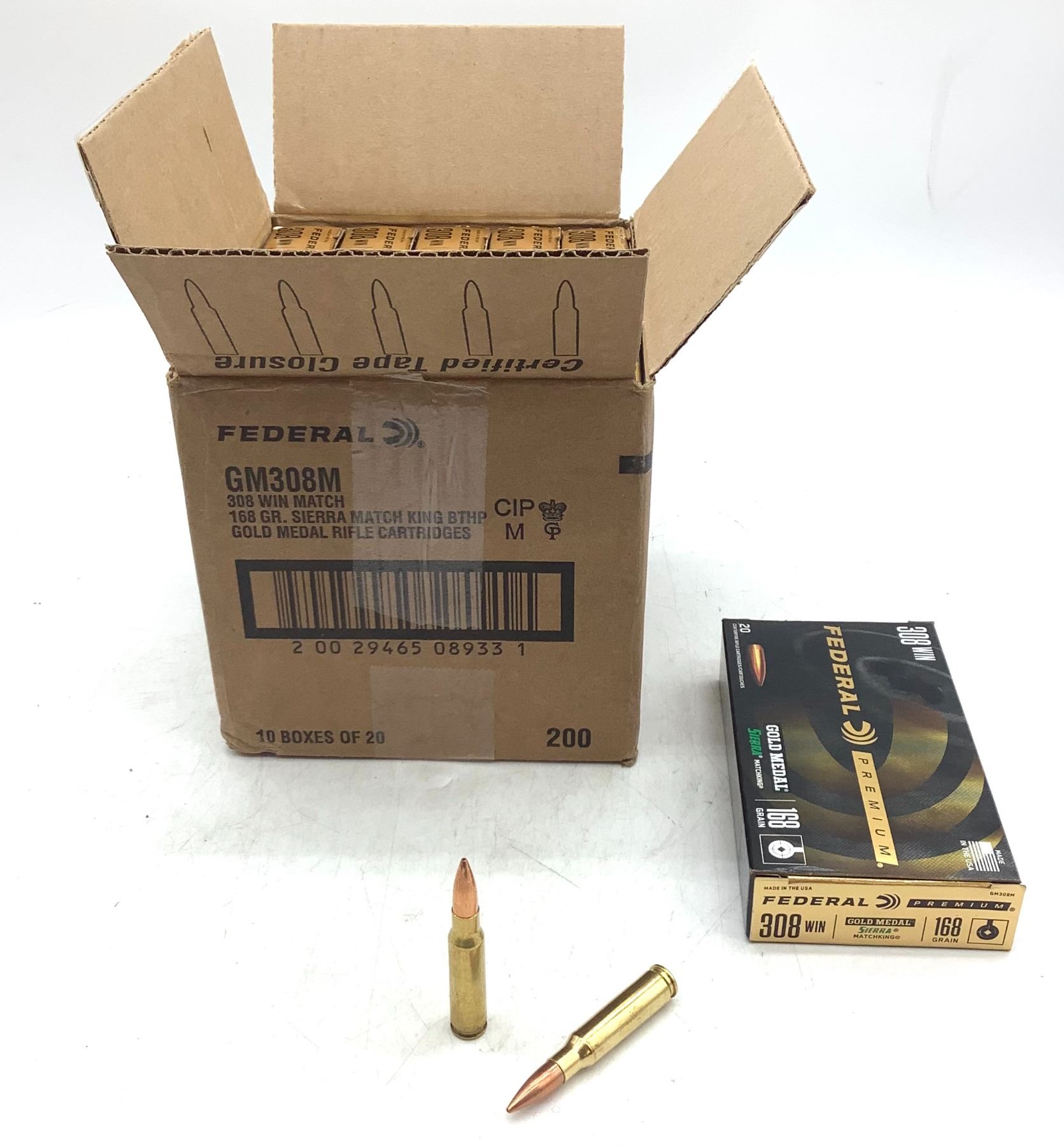 Federal Gold Medal 308 Win 168 Gr Sierra Match King BTHP Ammunition, 200 Rounds
