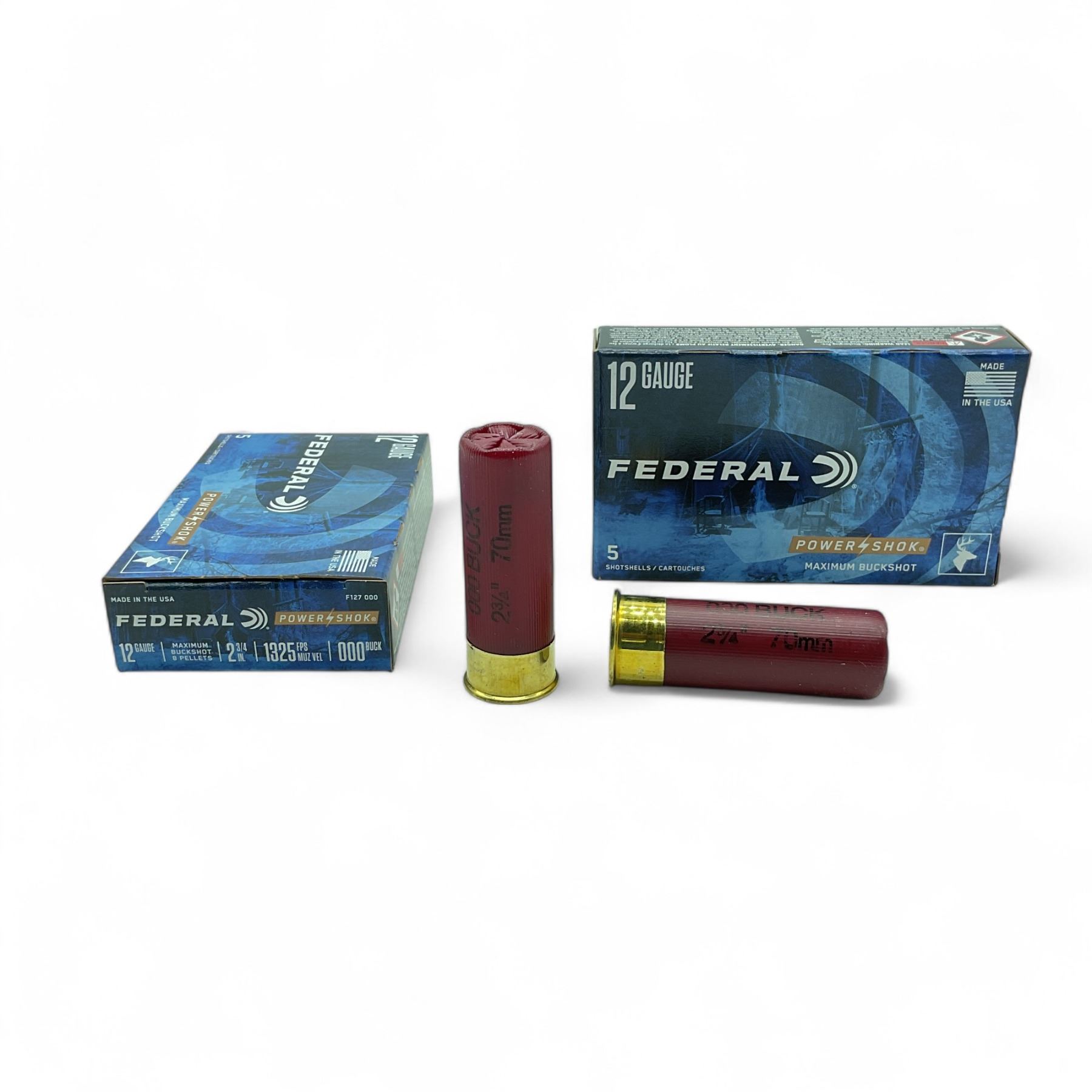 Federal Power-Shok 12 Ga, 2-3/4", 000 Buck Maximum Buckshot 8 Pellet Ammunition, 10 Rounds