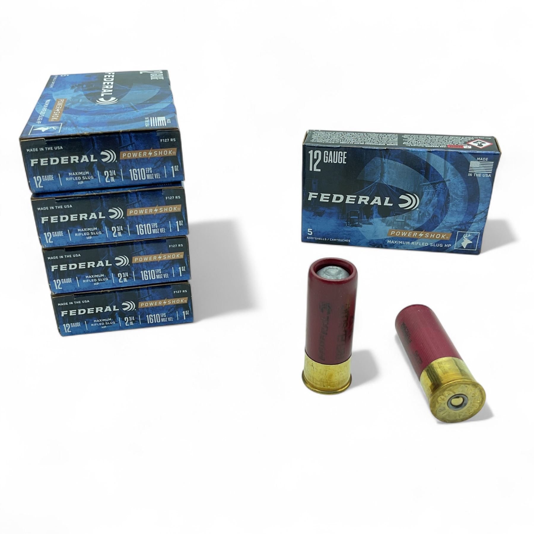 Federal Power Shok 12 Ga, 2-3/4", 1 oz Maximum Rifled Slug HP Ammunition, 25 Rounds
