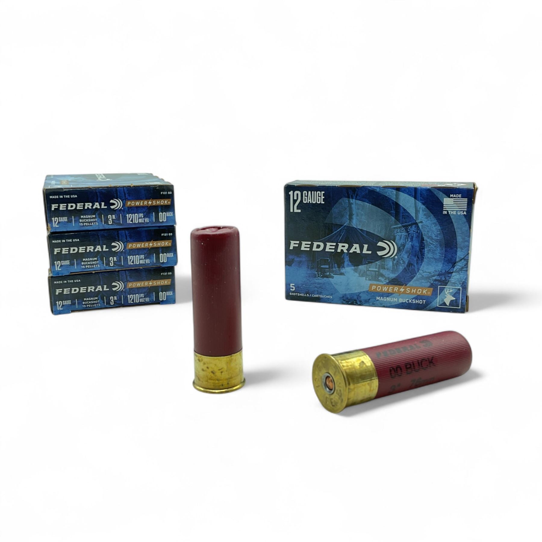 Federal Power Shok 12 Ga, 3", 00 Buck Magnum Buckshot, 15 Pellet Ammunition, 20 Rounds