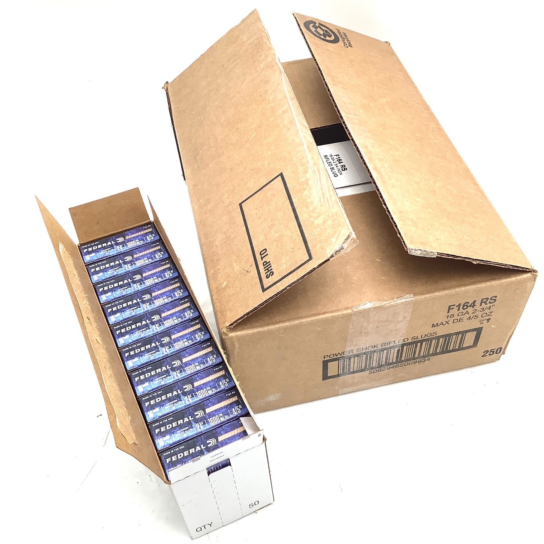 Federal Power Shok 16 Ga 2 3/4" Rifled Slug Ammunition, 250 Round Case