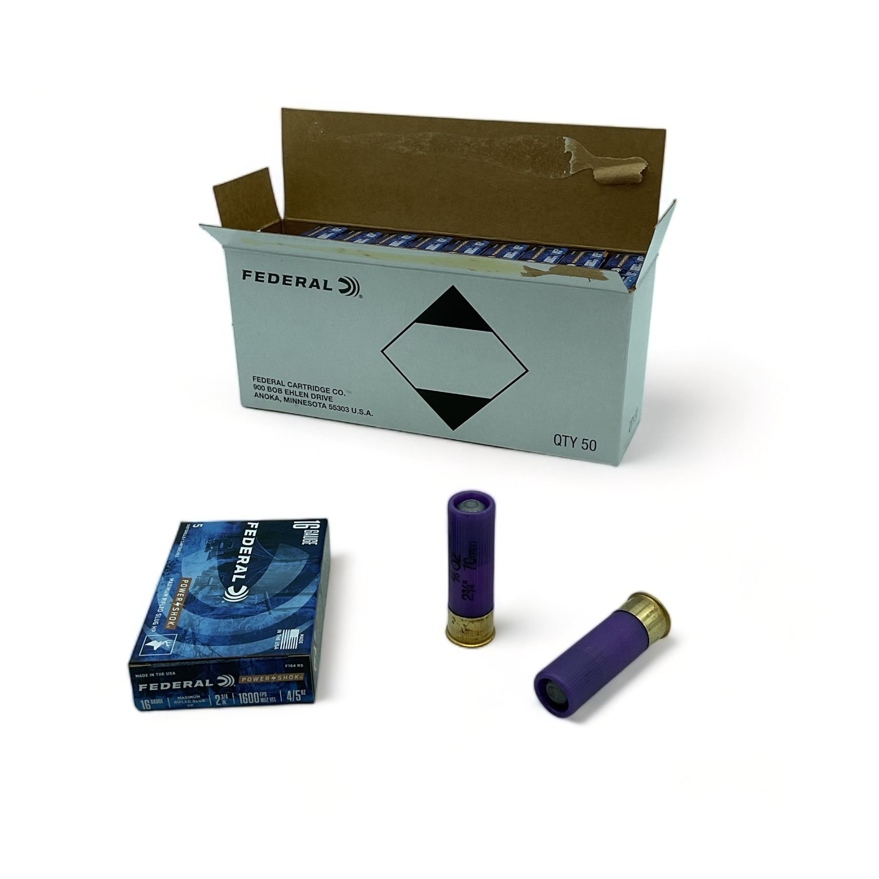 Federal Power Shok 16 Ga 2 3/4  Rifled Slug Ammunition, 50 Rounds