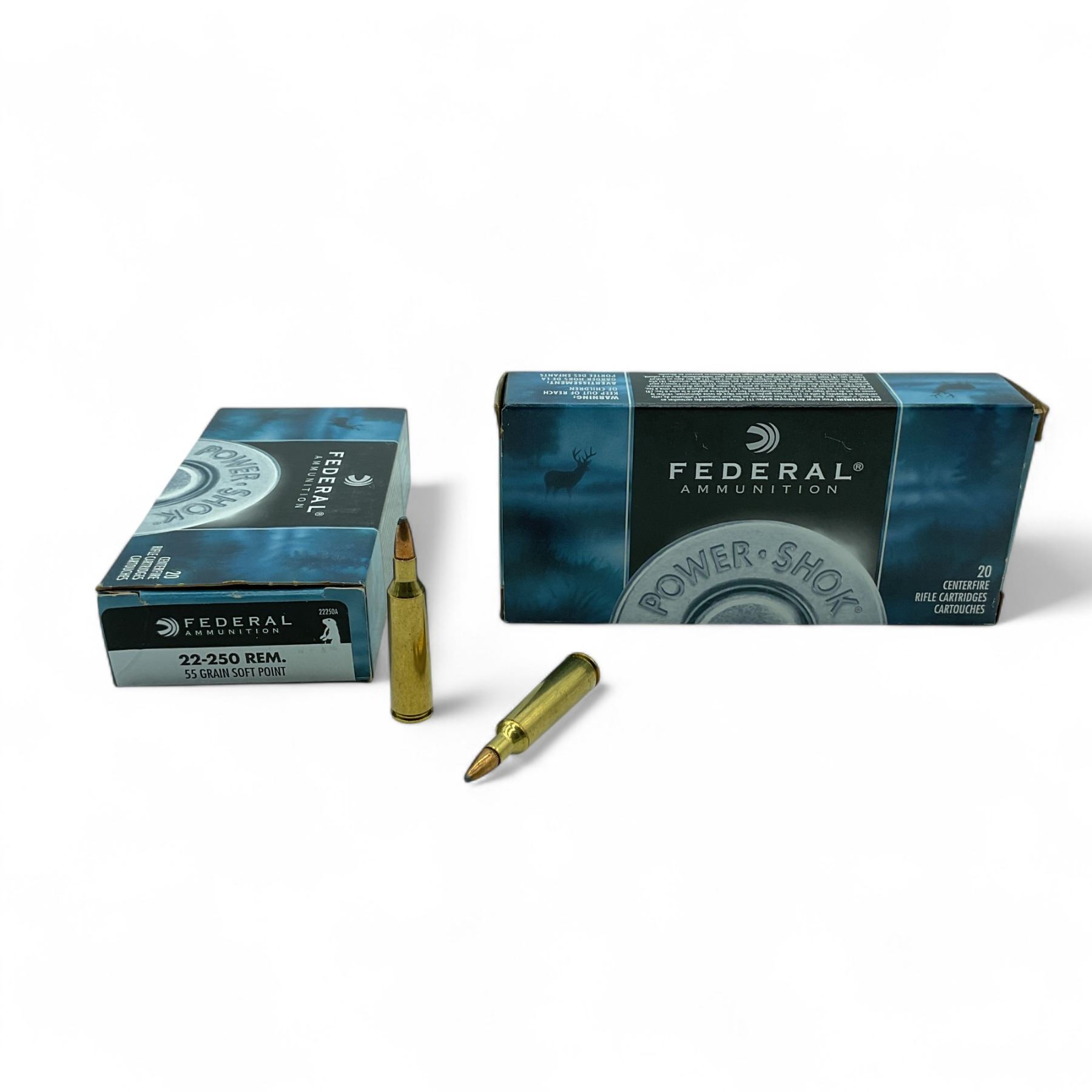 Federal Power-Shok 22-250 Rem, 55 Grain Soft Point Ammunition, 40 Rounds