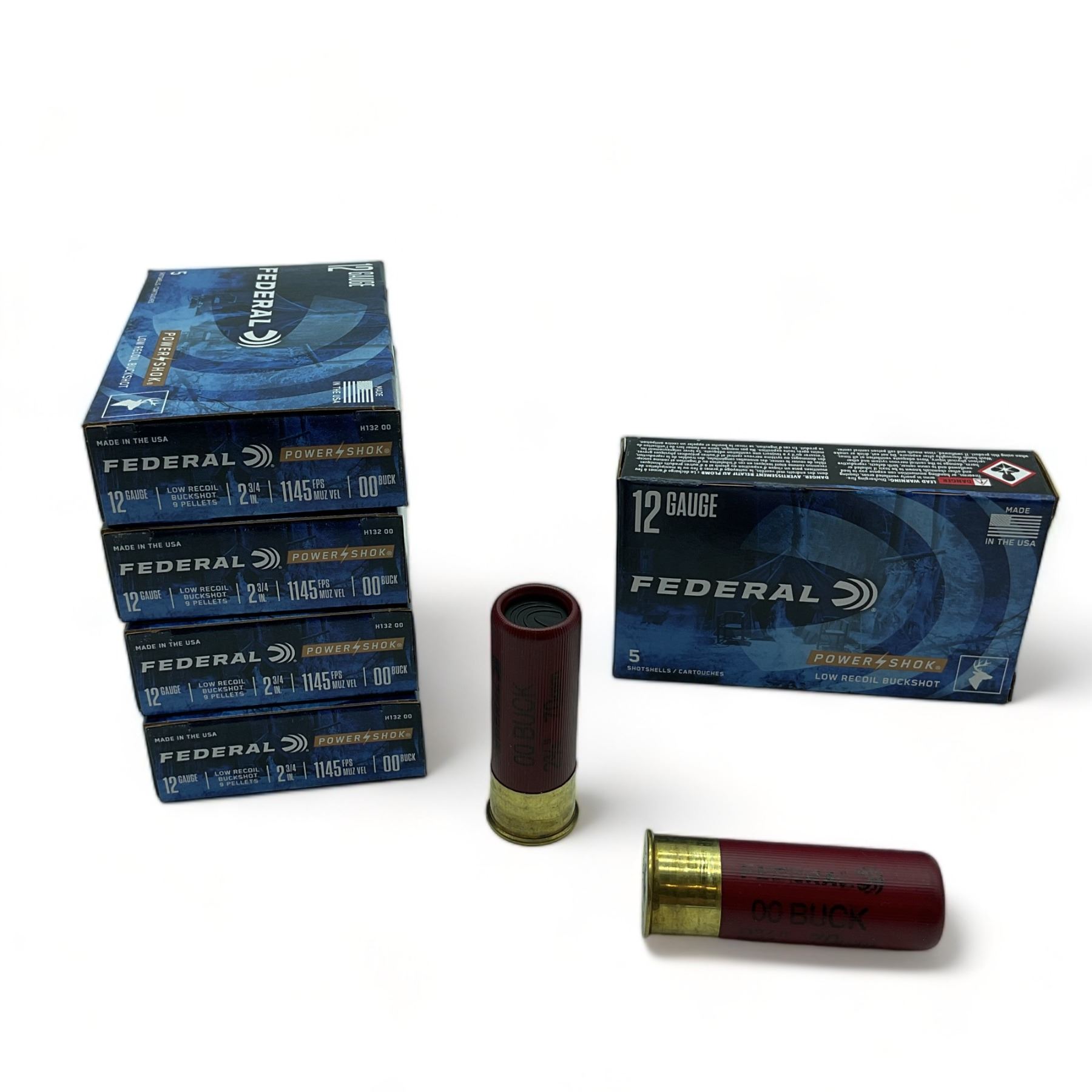 Federal Power Shok Low Recoil 12 Gauge 2 3/4" 00 Buck Ammunition, 25 Rounds
