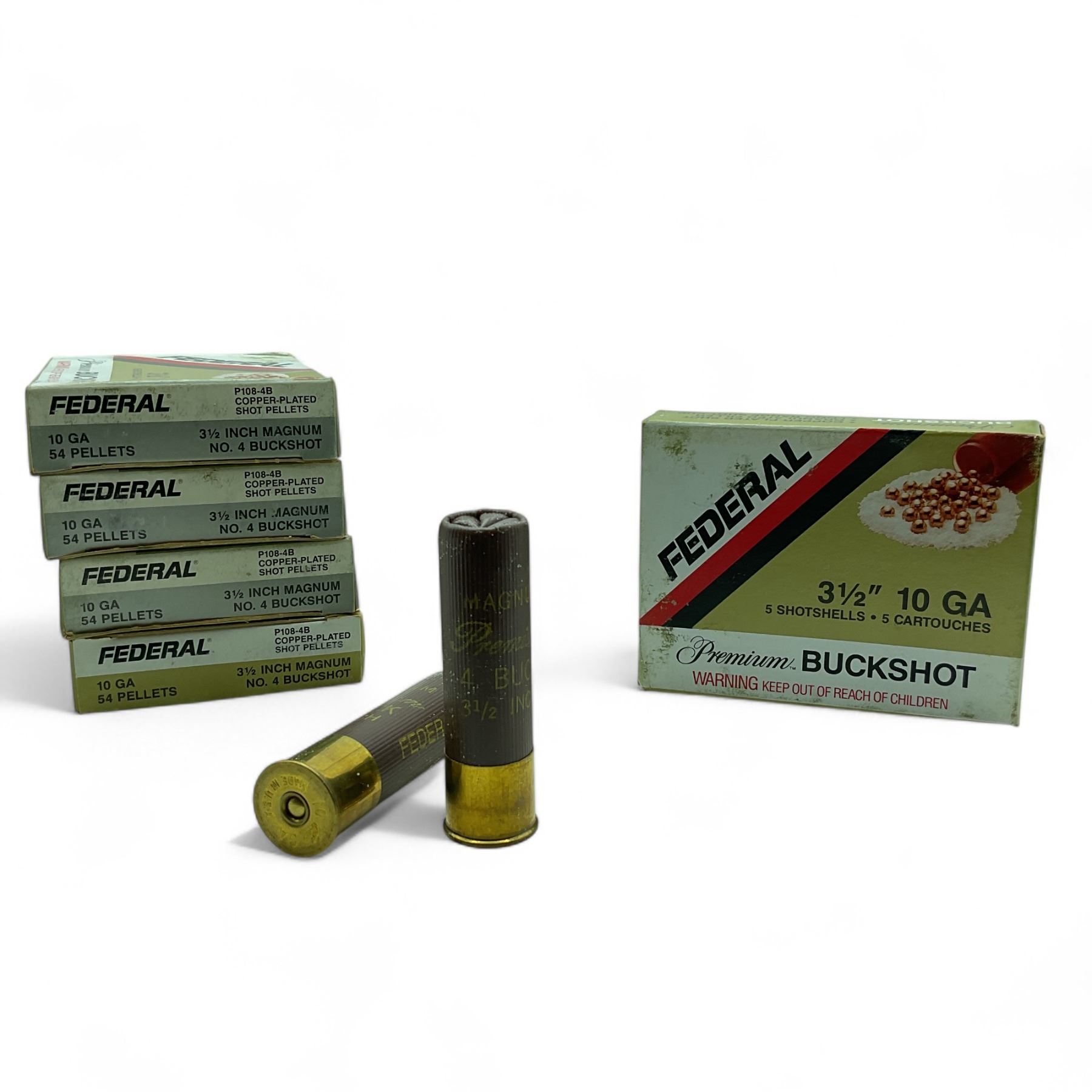 Federal Premium 10 Ga, 3-1/2", 54 Pellet Magnum, #4 Buckshot Ammunition, 25 Rounds