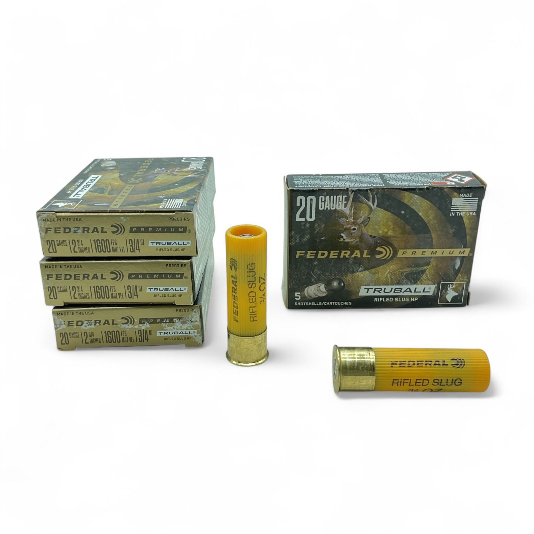 Federal Premium 20 Ga, 2-3/4", 3/4 oz TruBall Rifled Slug HP Ammunition, 20 Rounds