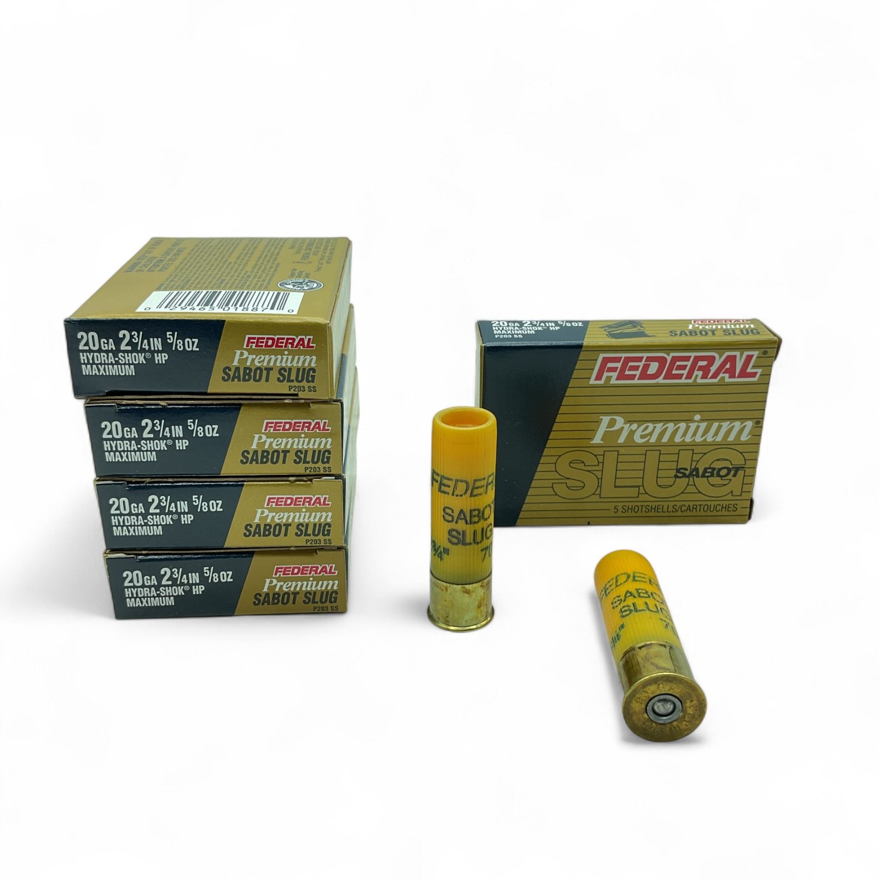 Federal Premium 20 Ga, 2-3/4", 5/8 oz Hydra-Shok HP Maximum Sabot Slug Ammunition, 25 Rounds
