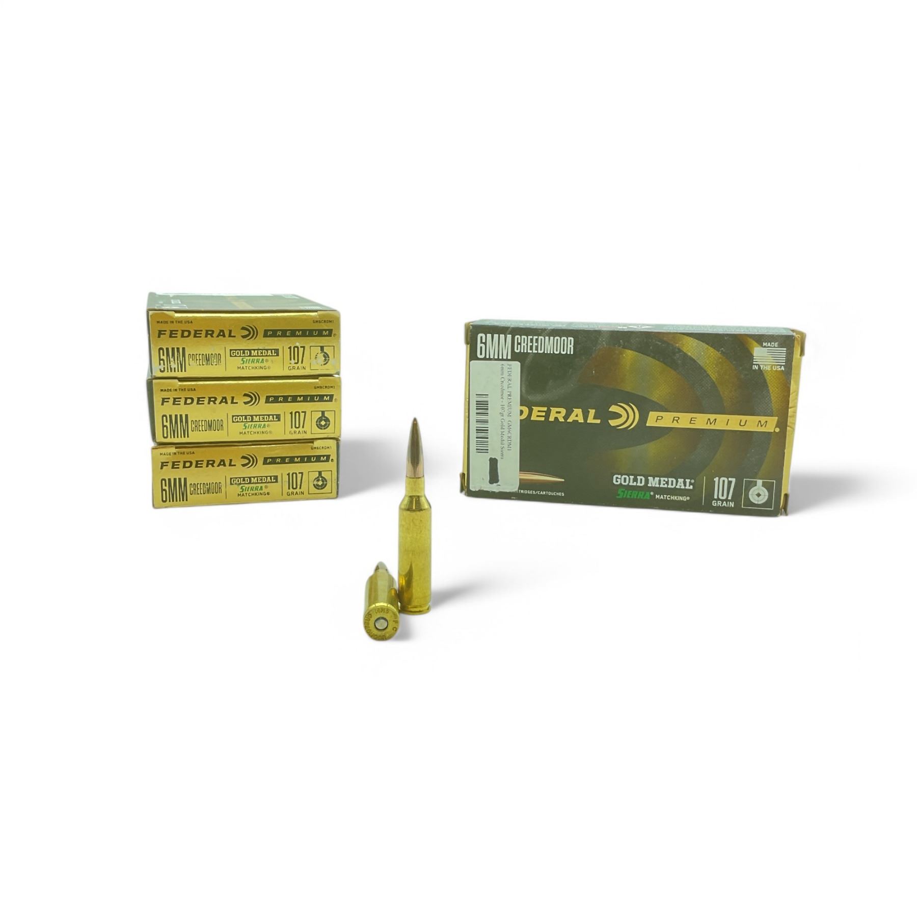 Federal Premium 6mm Creedmoor, 107 Grain Gold Medal Sierra Matchking Ammunition, 80 Rounds