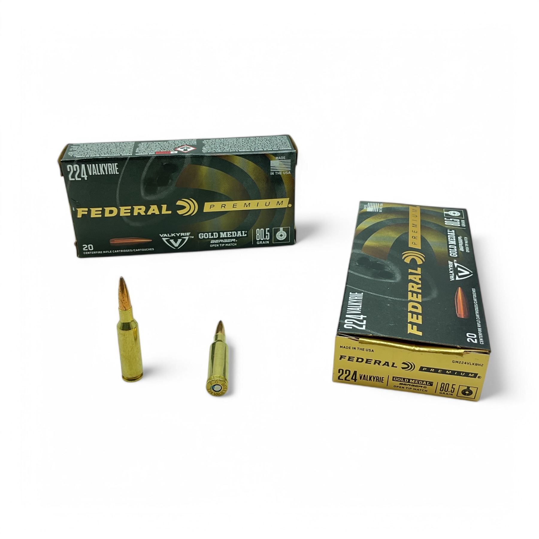 Federal Premium Gold Medal Berger 224 Valkyrie 80.5 Grain OTM Ammunition, 40 Rounds