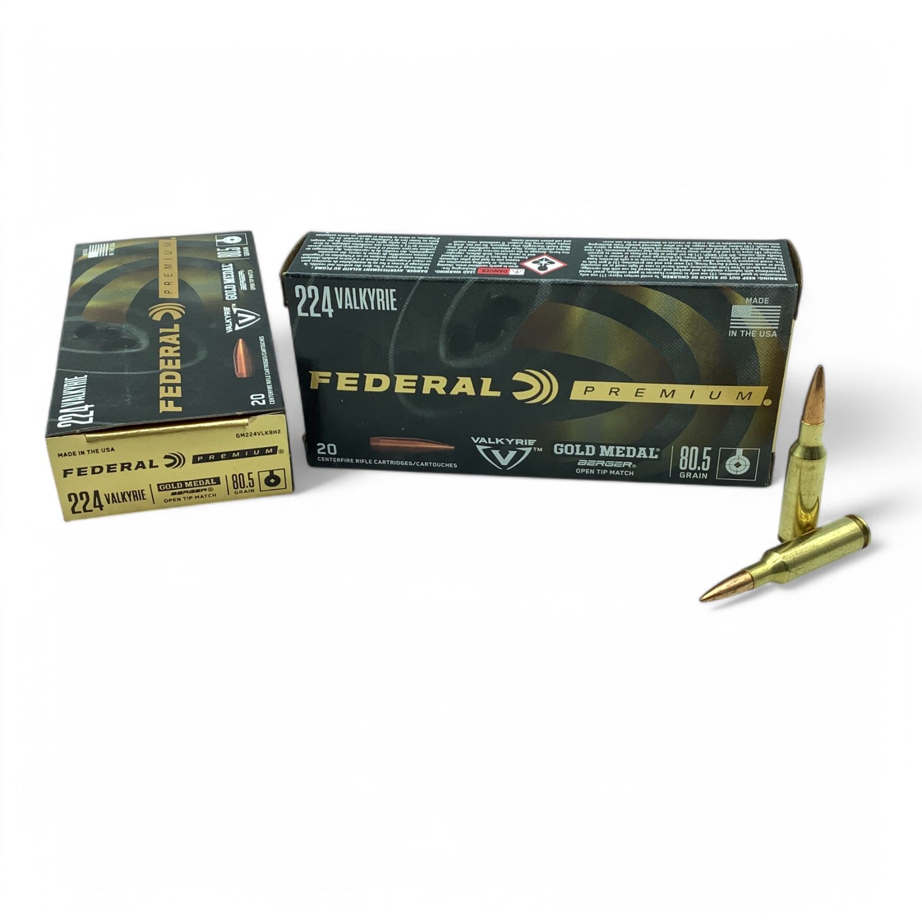 Federal Premium Gold Medal Berger 224 Valkyrie 80.5 Grain OTM Ammunition, 40 Rounds