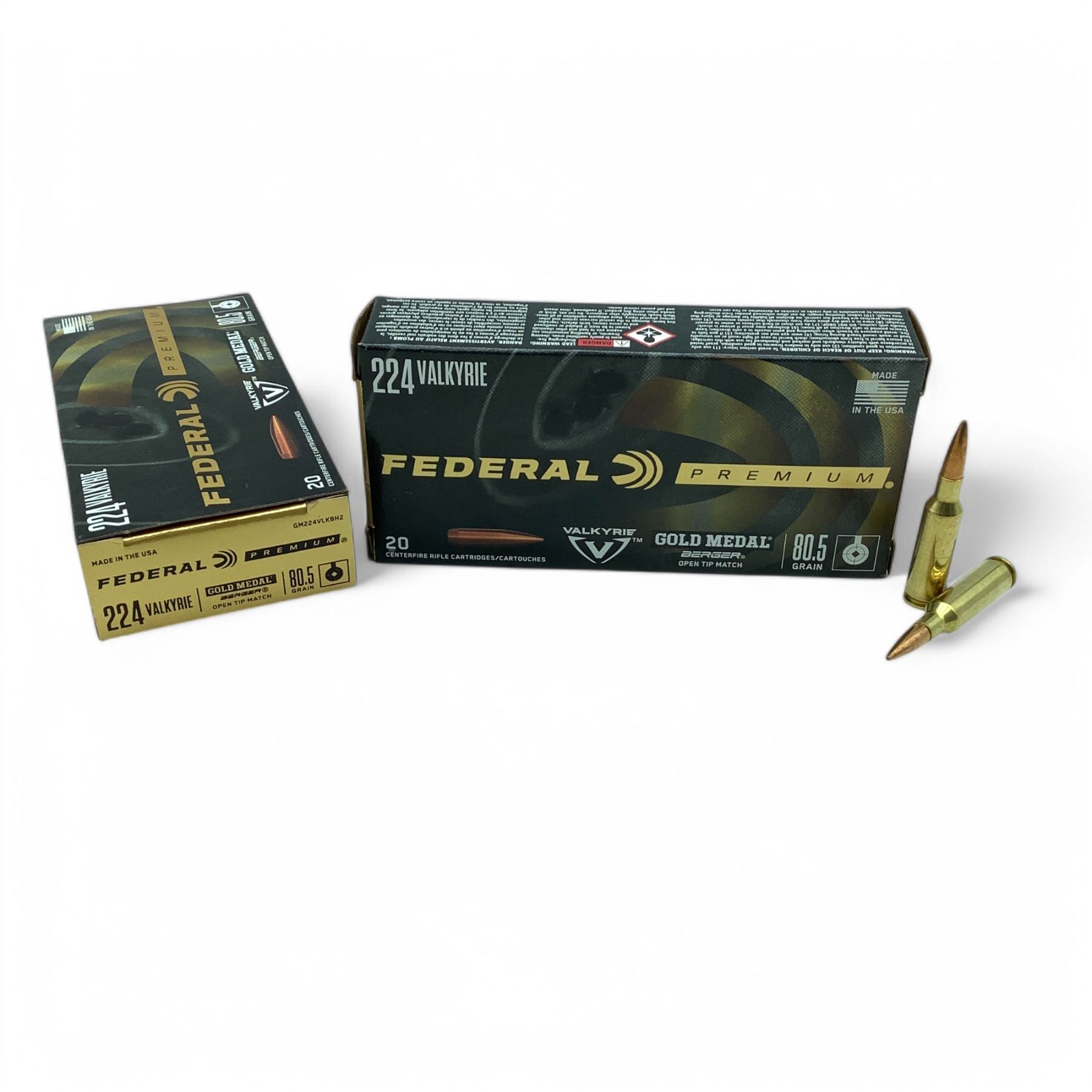 Federal Premium Gold Medal Berget 224 Valkyrie 80.5 Grain OTM Ammunition, 40 Rounds
