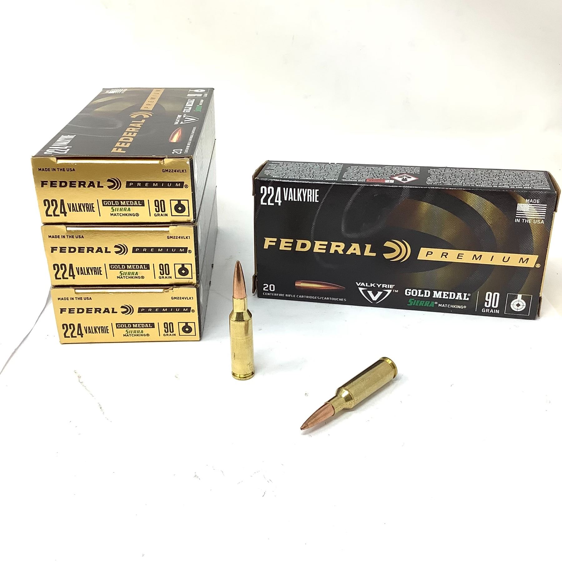 Federal Premium Gold Medal Sierra Matchking 224 Valkyrie 90 Grain Ammunition, 80 Rounds