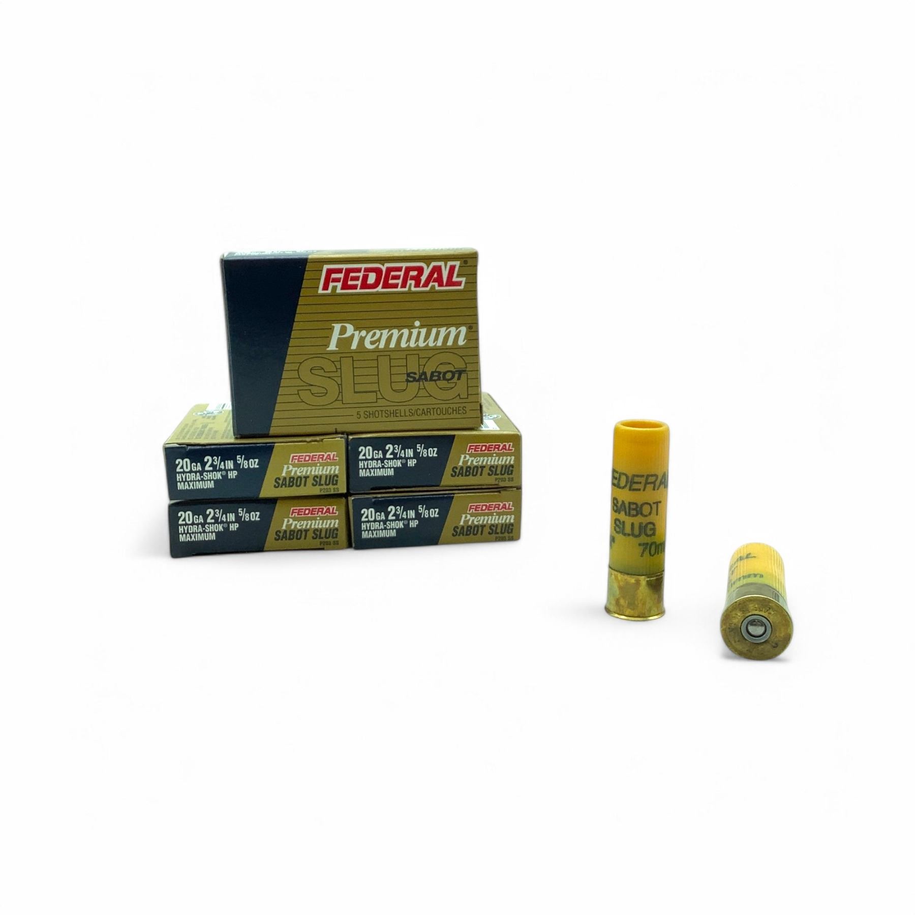 Federal Premium Hydra-Shok HP Maximum 20 Ga, 2-3/4", 5/8 oz Sabot Slug Ammunition, 25 Rounds