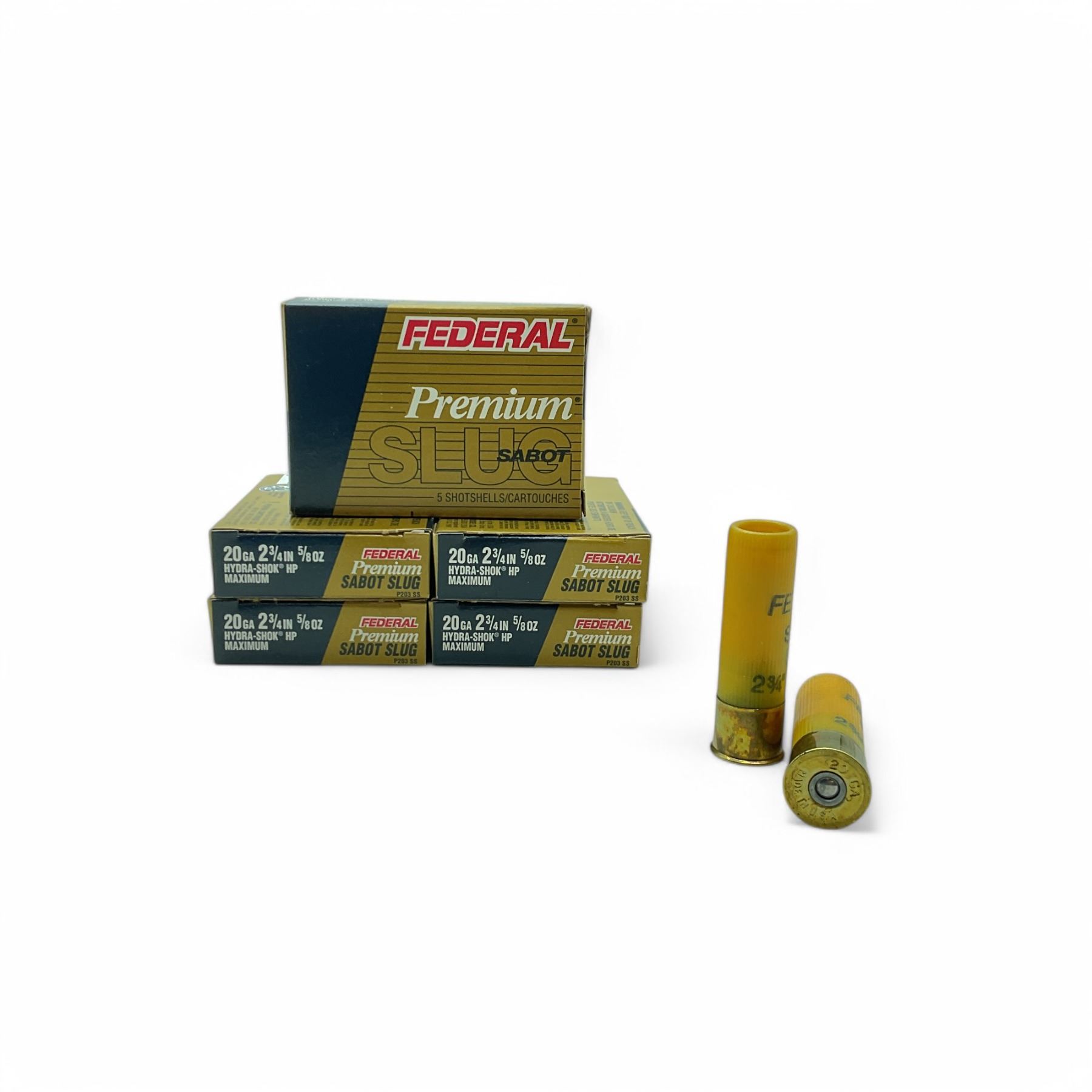 Federal Premium Hydra-Shok HP Maximum 20 Ga, 2-3/4", 5/8 oz Sabot Slug Ammunition, 25 Rounds