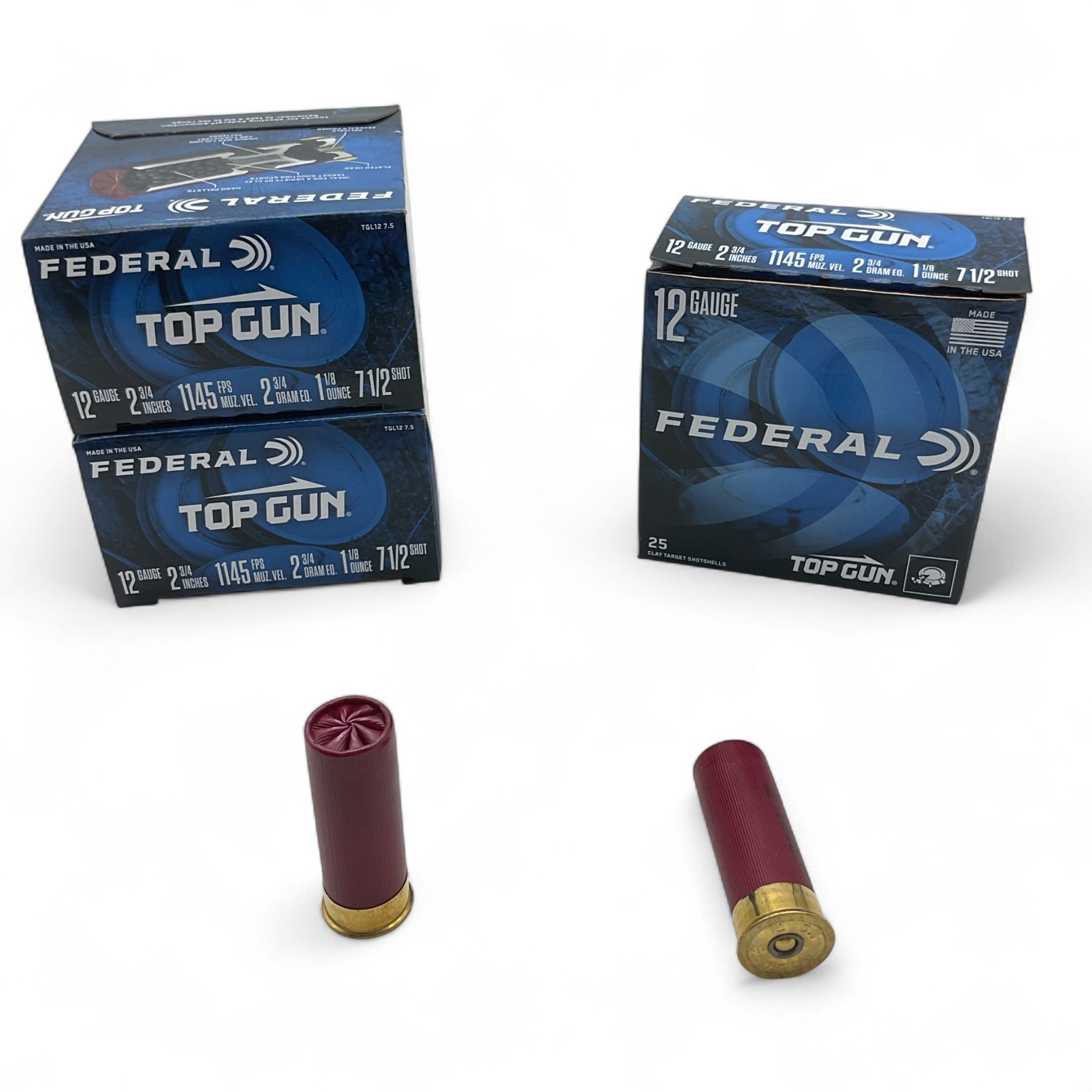 Federal Top Gun 12 Gauge 2 3/4", 1 1/8 oz #7 1/2 Shot Ammunition, 75 Rounds
