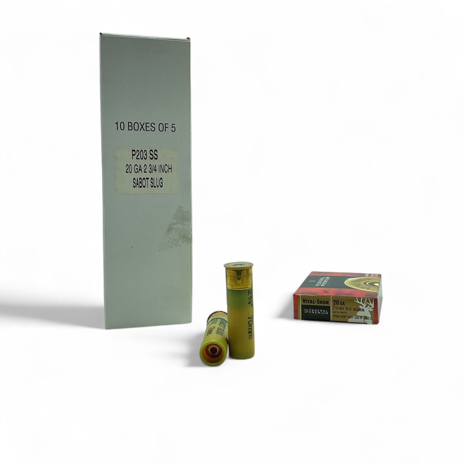 Federal Vital-Shok 20 Ga, 2-3/4", 5/8 oz Maximum Hydra-Shok Sabot Slug HP Ammunition, 50 Rounds