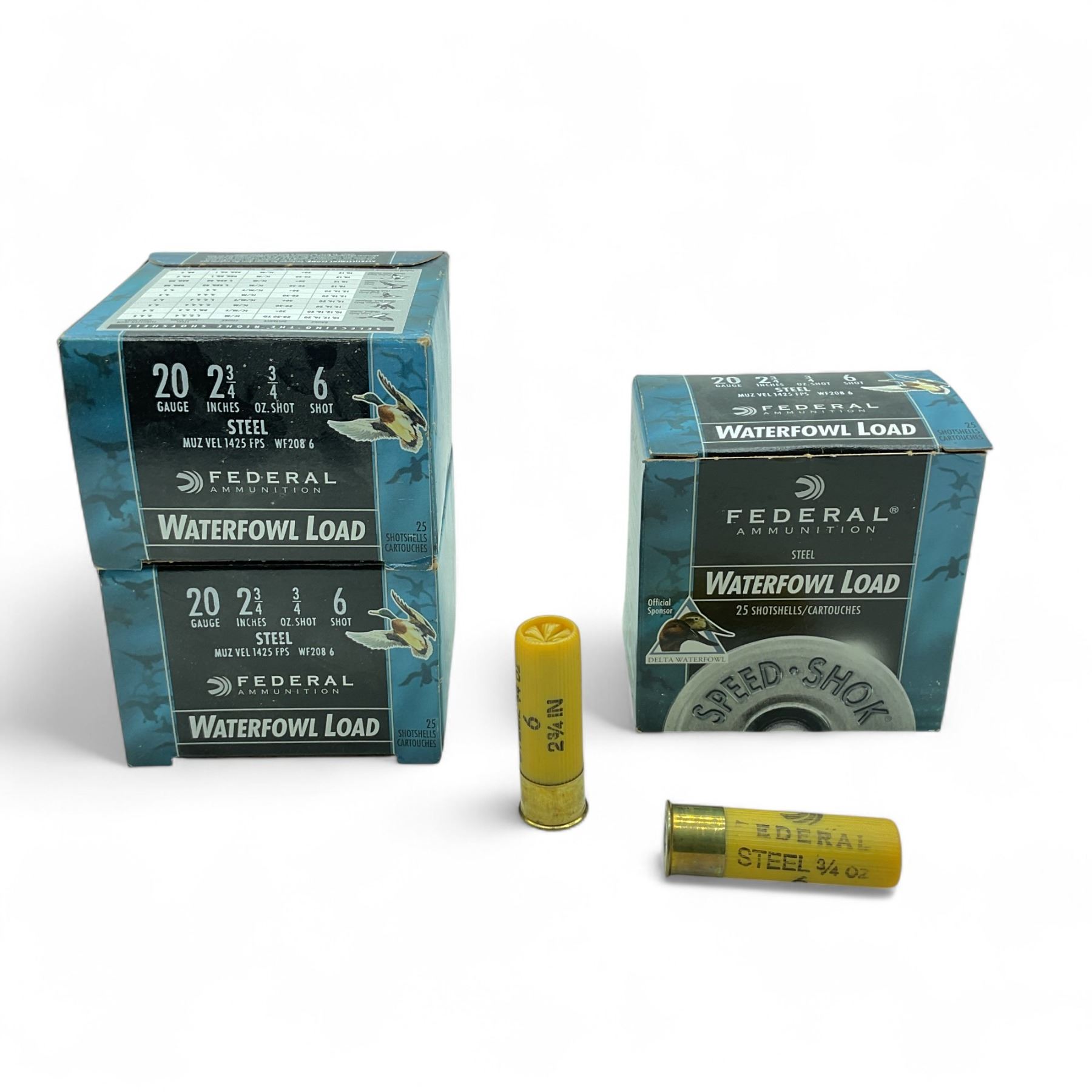 Federal Waterfowl Load 20 Ga, 2-3/4". 3/4 oz, #6 Shot Steel Ammunition, 57 Rounds