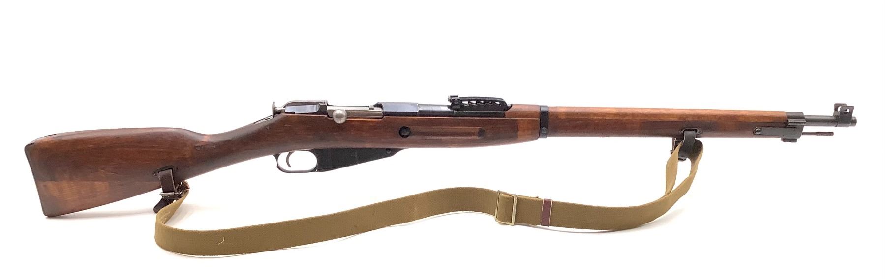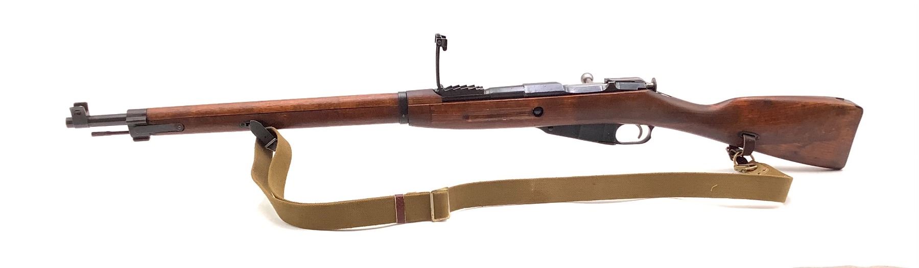 Finnish 1928 Tikka-manufactured Mosin-Nagant Model 27 bolt-action service rifle chambered in 7.62X54R. It has the Finnish-modified Konovolov rear sight and new front sight. Two-piece stock. It has been retrofitted with the "popsicle stick" nosecap, as the original design was breaking breaking the stock during bayonet training. Numbers on receiver and bolt match.