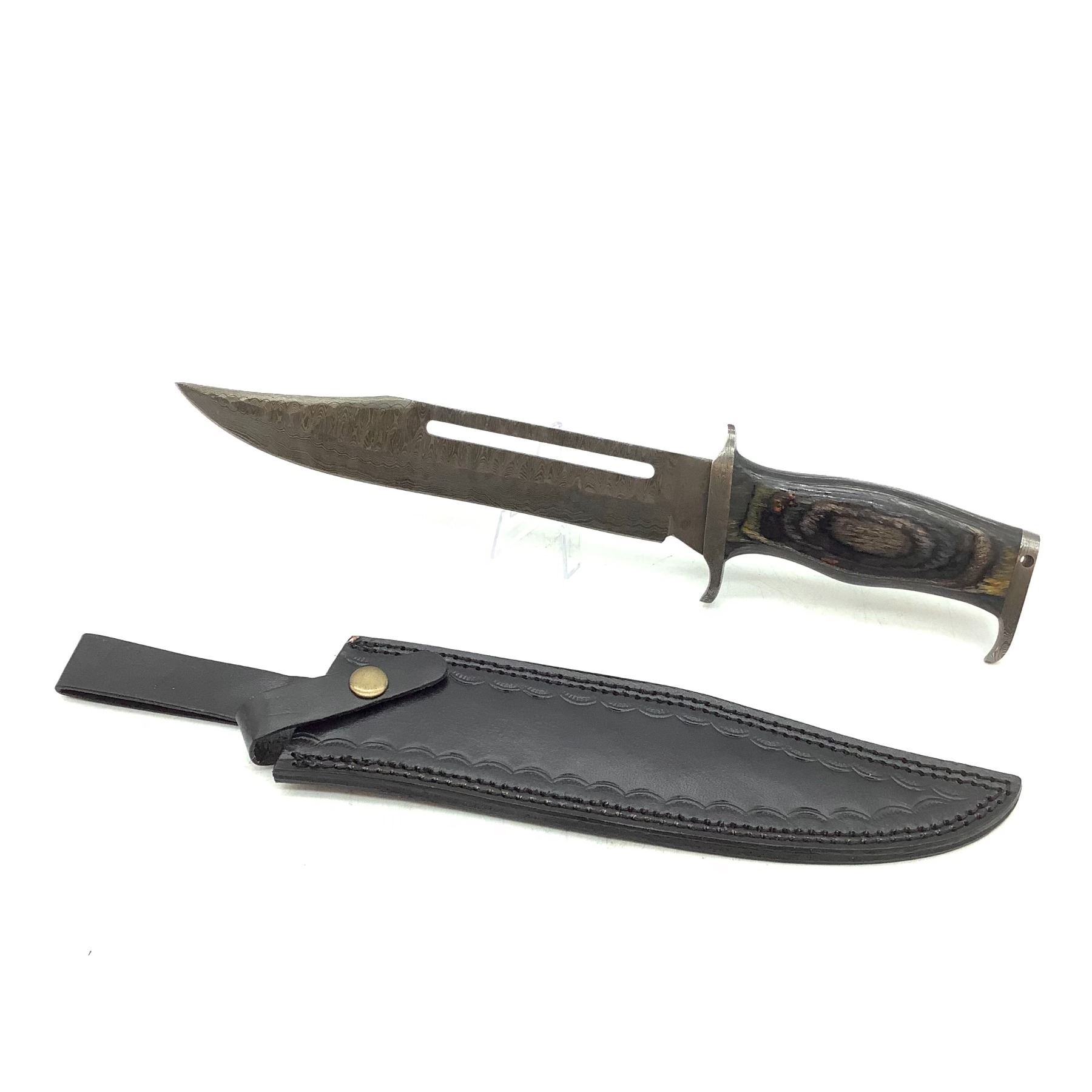 Fixed 10" Blade Bowie Knife with Leather Belt Sheath