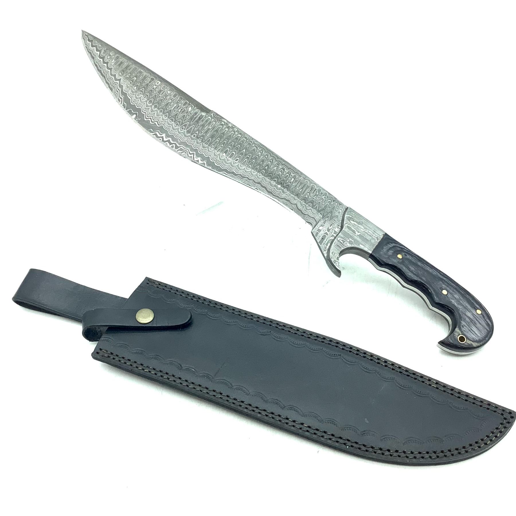 Fixed 11" Kukri Blade Knife with Wood Handle and Leather Sheath