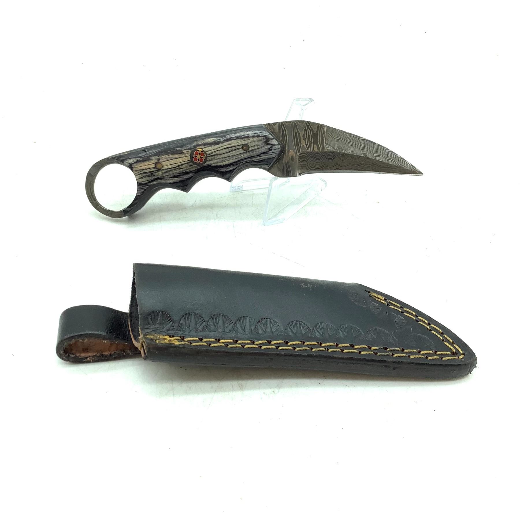 Fixed 2 1/2" Double Sided Blade Knife with Grey Wood Handle in Leather Belt Sheath