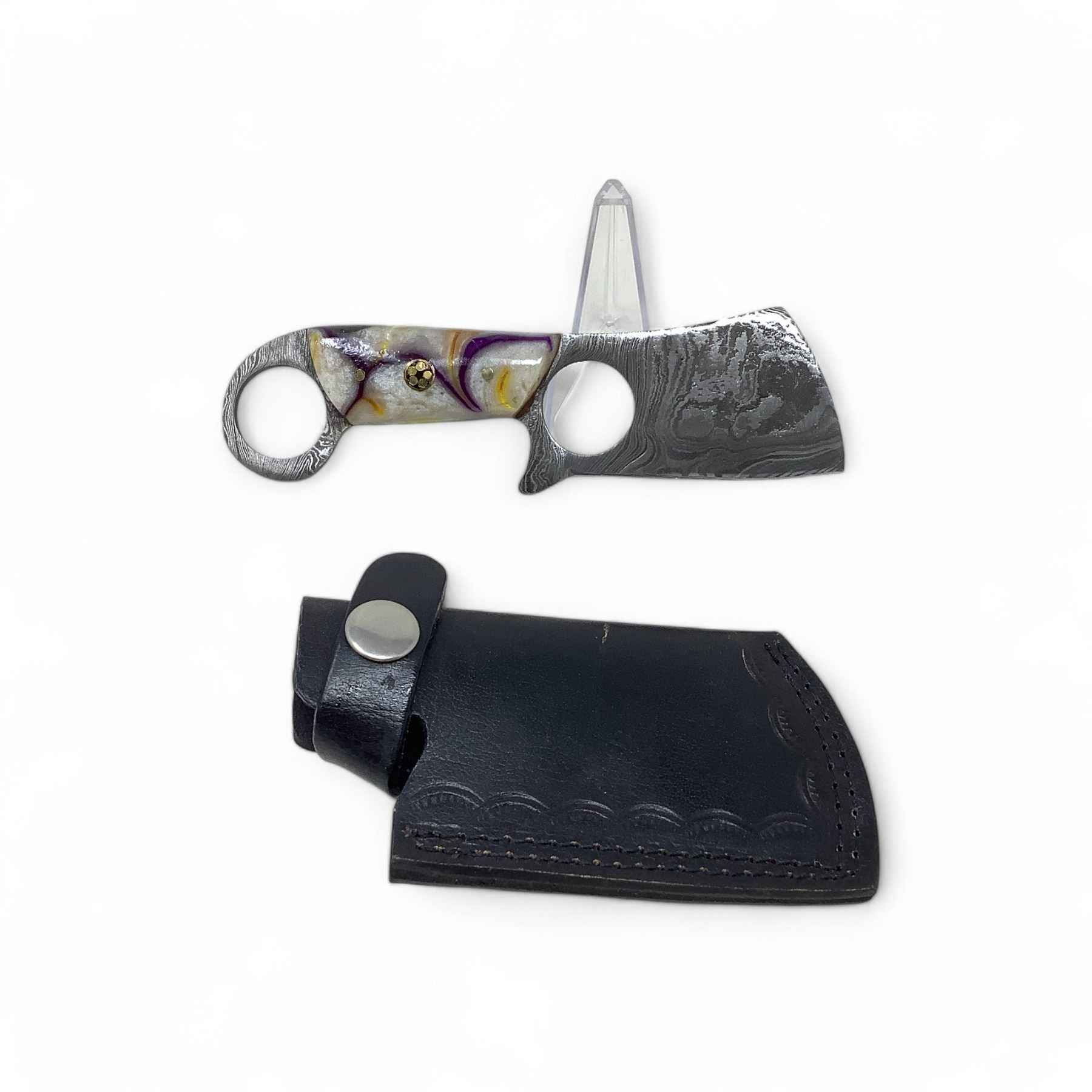 Fixed 3 1/2" Damascus Blade Knife with Bone Handle and Leather Belt Sheath