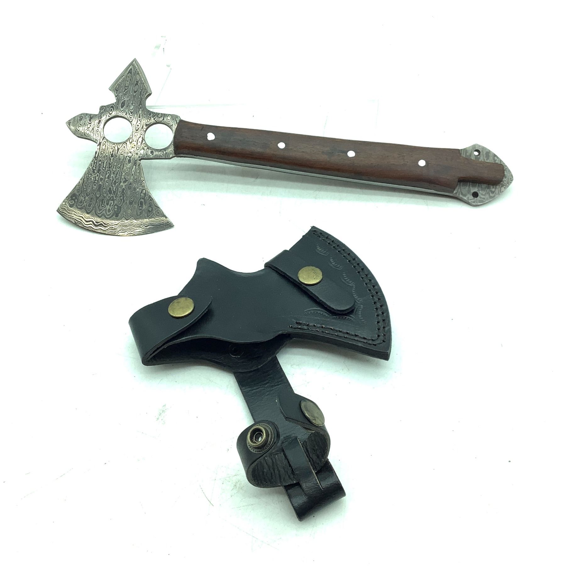 Fixed 3" Blade Viking Tomahawk Axe with Wood Handle and Leather Sheath