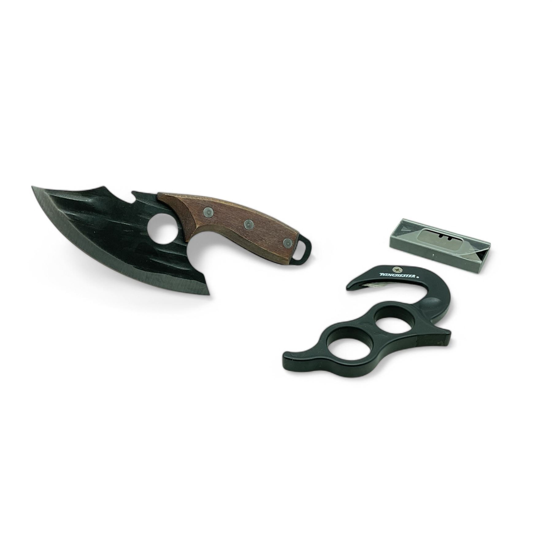 Fixed 5.5" Blade Knife with Wooden Handle and Winchester Skinning Hook Knife with Extra Blades