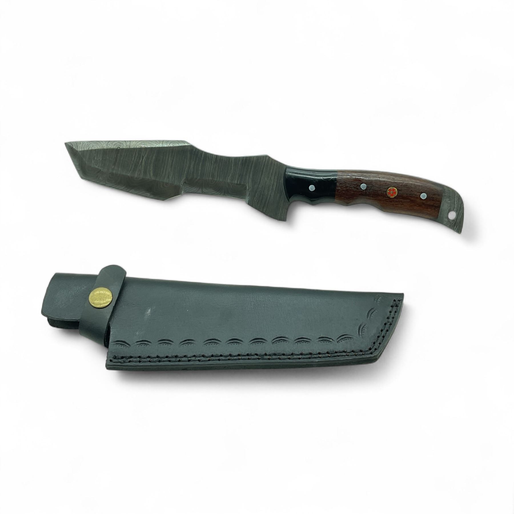 Fixed 6 1/2" Damascus Blade Knife with Leather Belt Sheath