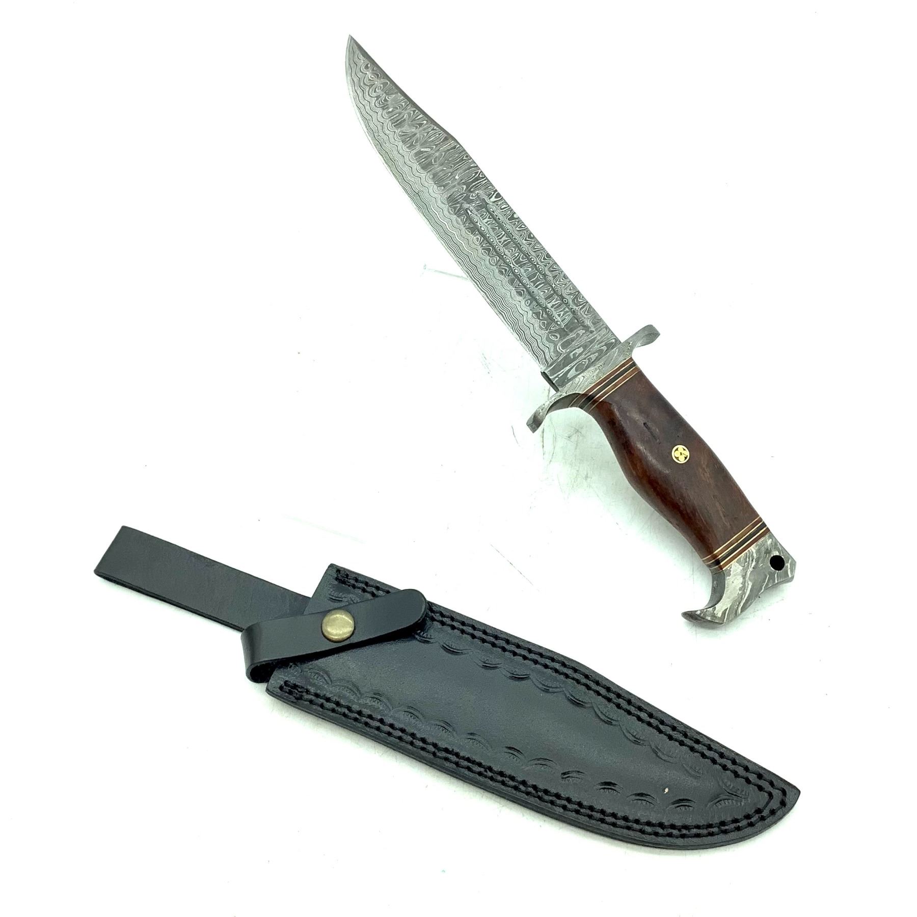 Fixed 7 1/2" Blade Knife With Wood Handle and Sheath. Marks on Blade