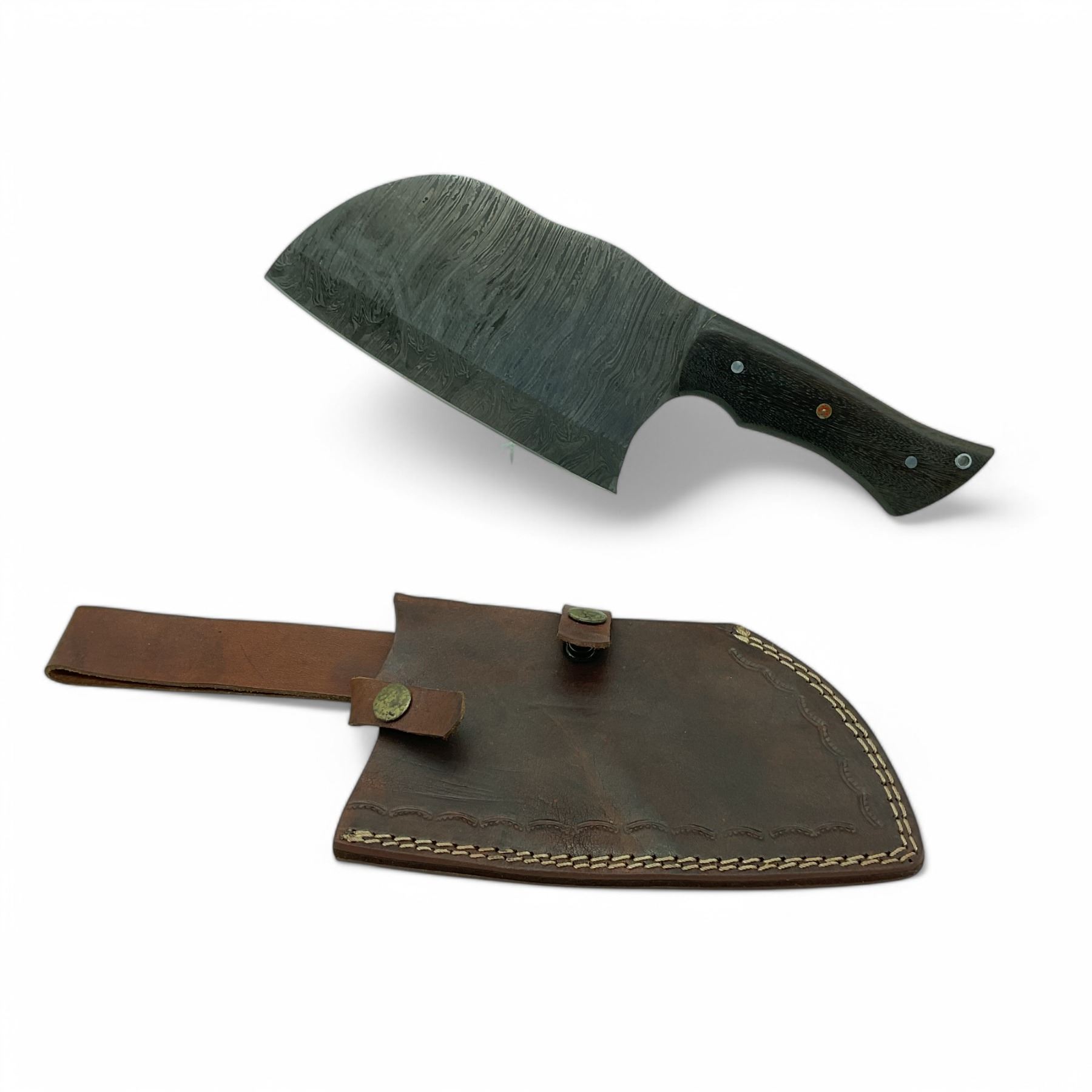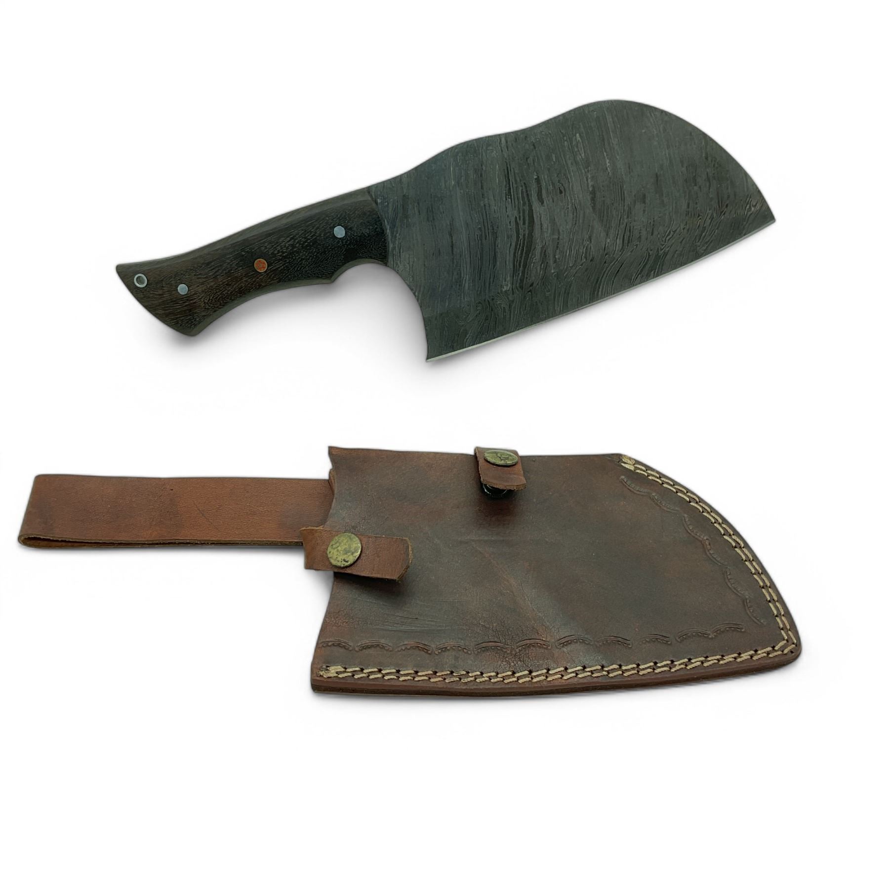 Fixed 7" Damascus Blade Cleaver with Leather Sheath