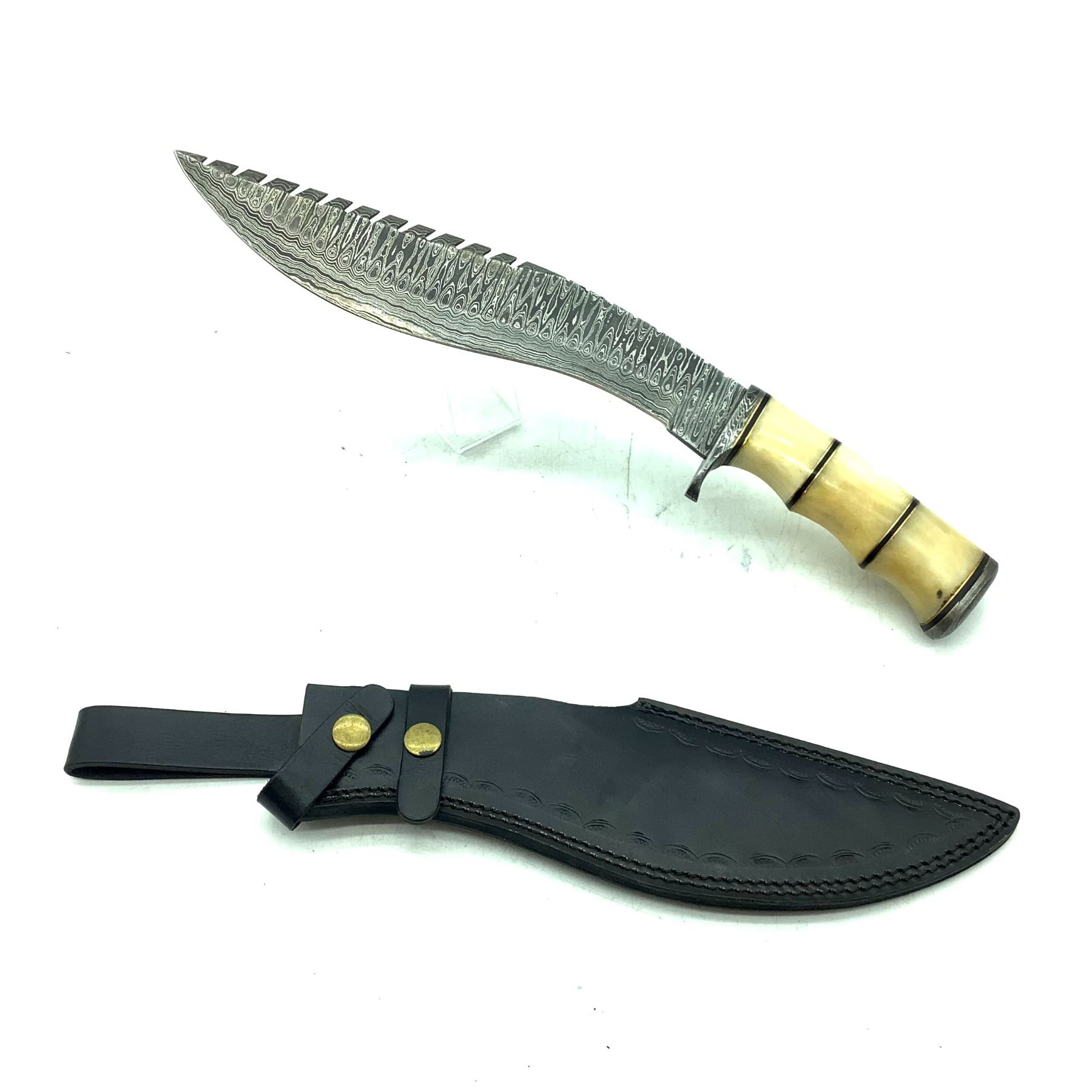 Fixed 9 1/2" Kukri Blade Knife with Bone Handle and Leather Sheath