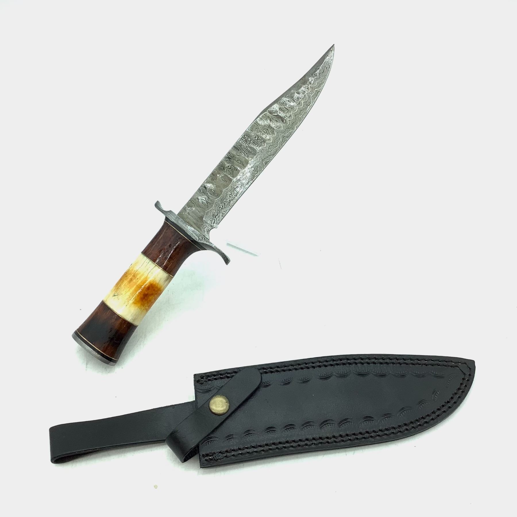 Fixed 9" Blade Bowie Knife with Wood Handle, Leather Sheath
