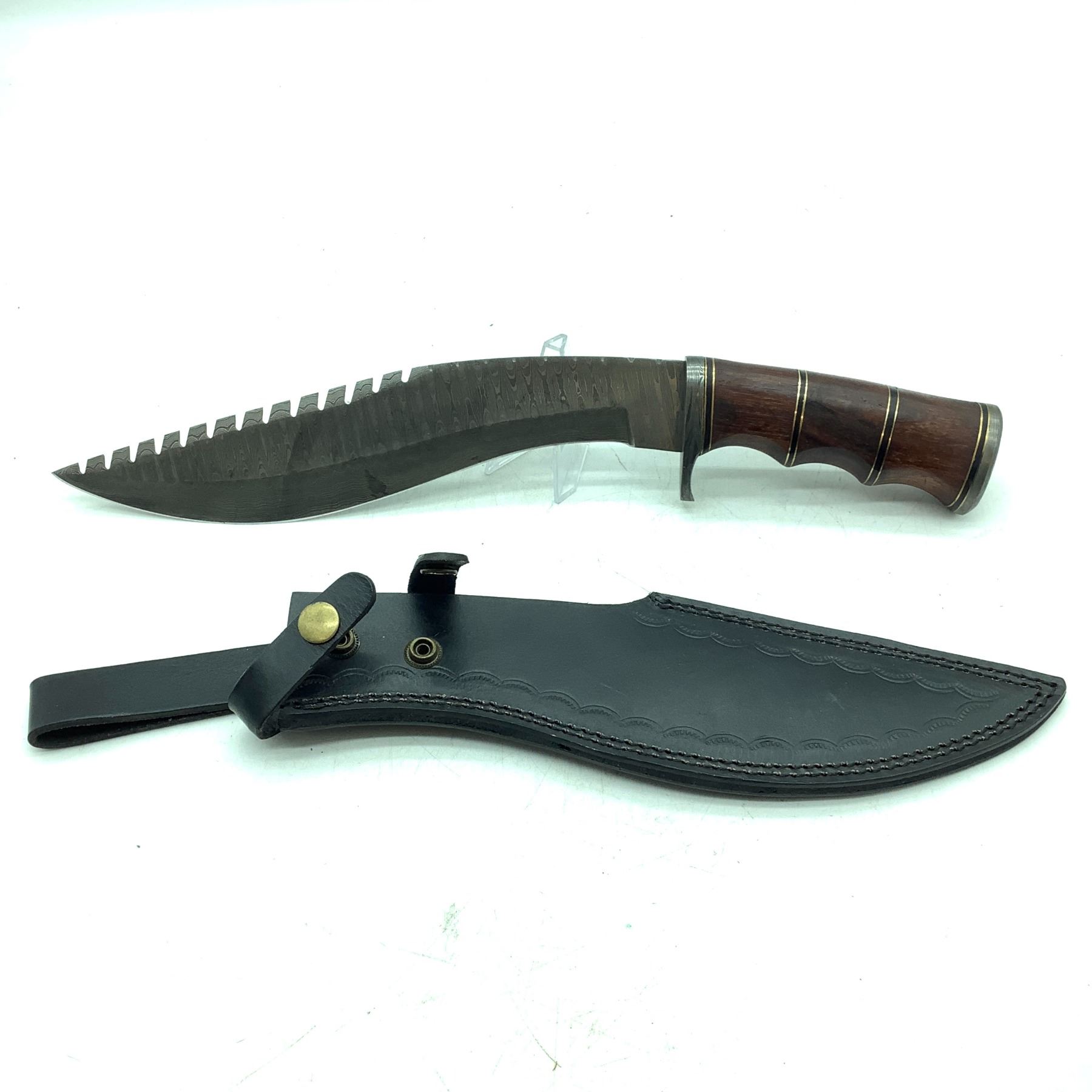 Fixed 9" Kukri Blade Knife with Wood Handle and Leather Belt Sheath