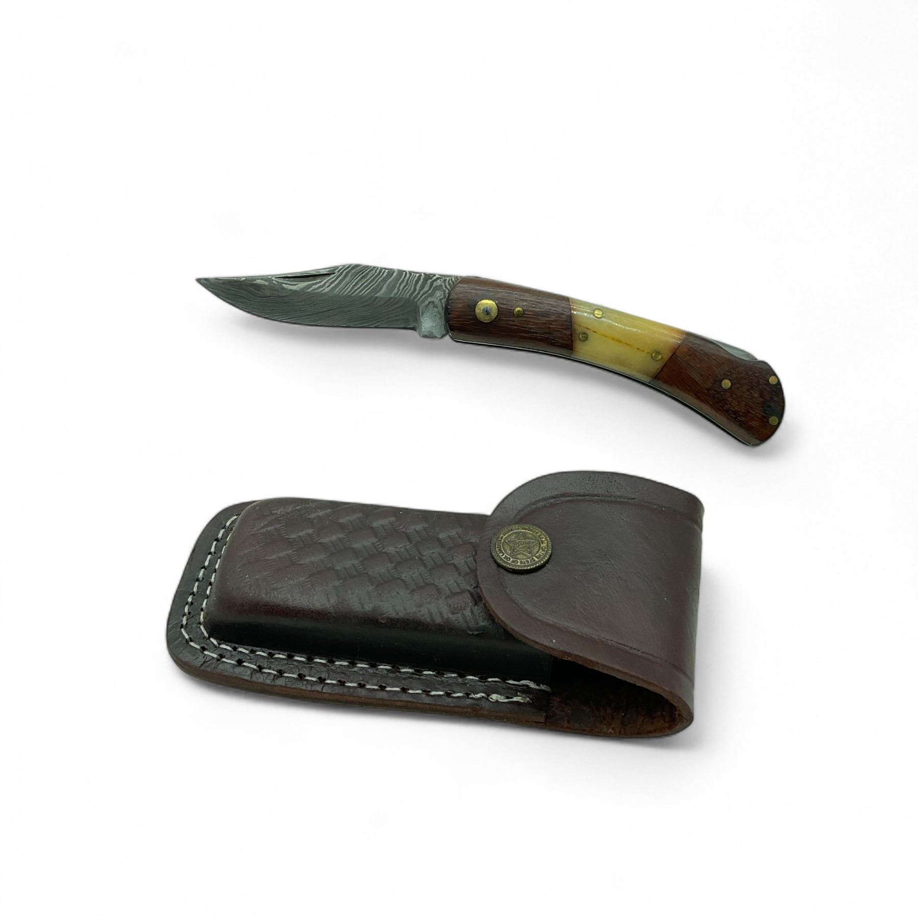 Folding 2 1/2" Blade Pocket Knife with Leather Belt Pouch