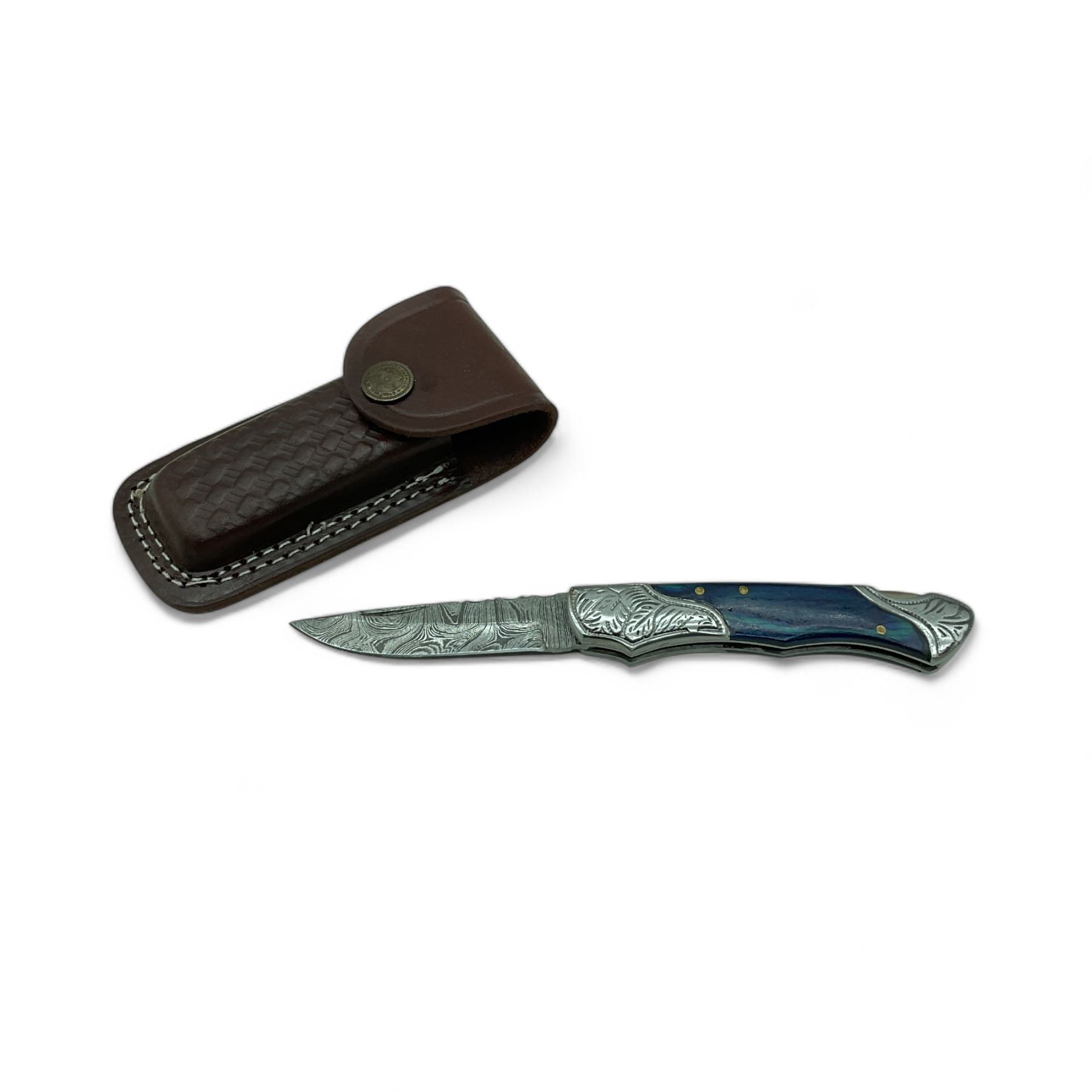 Folding 2 1/2" Damascus Blade Knife in Sheath