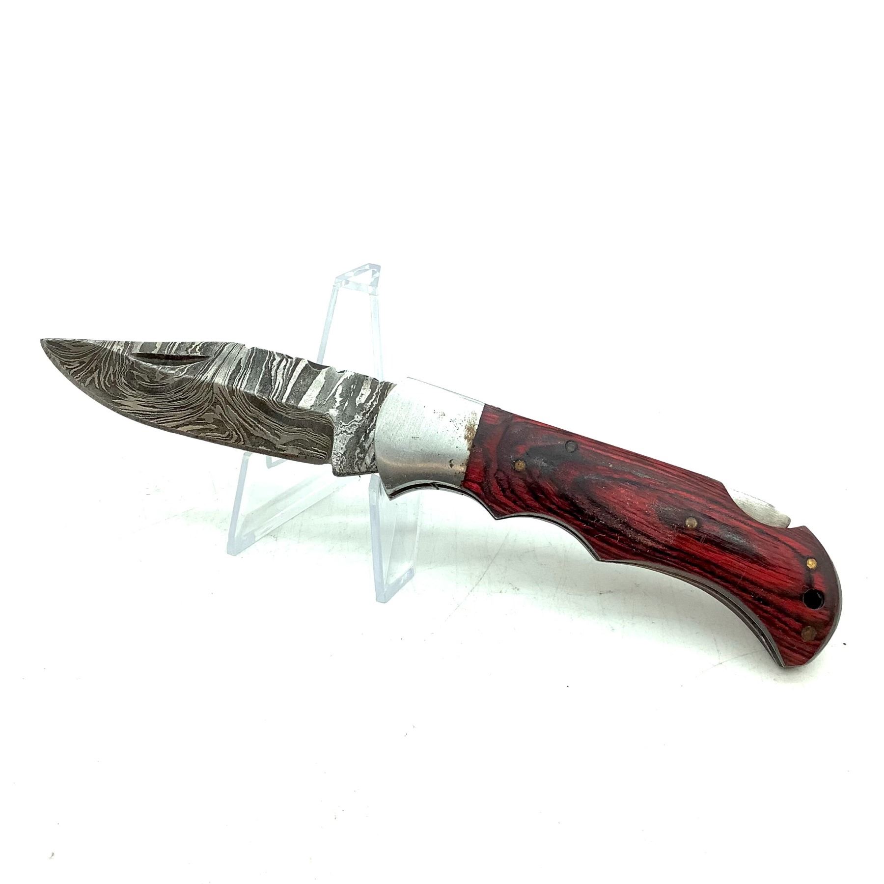 Folding 2 3/4" Blade Pocket Knife with Red Wood Handle