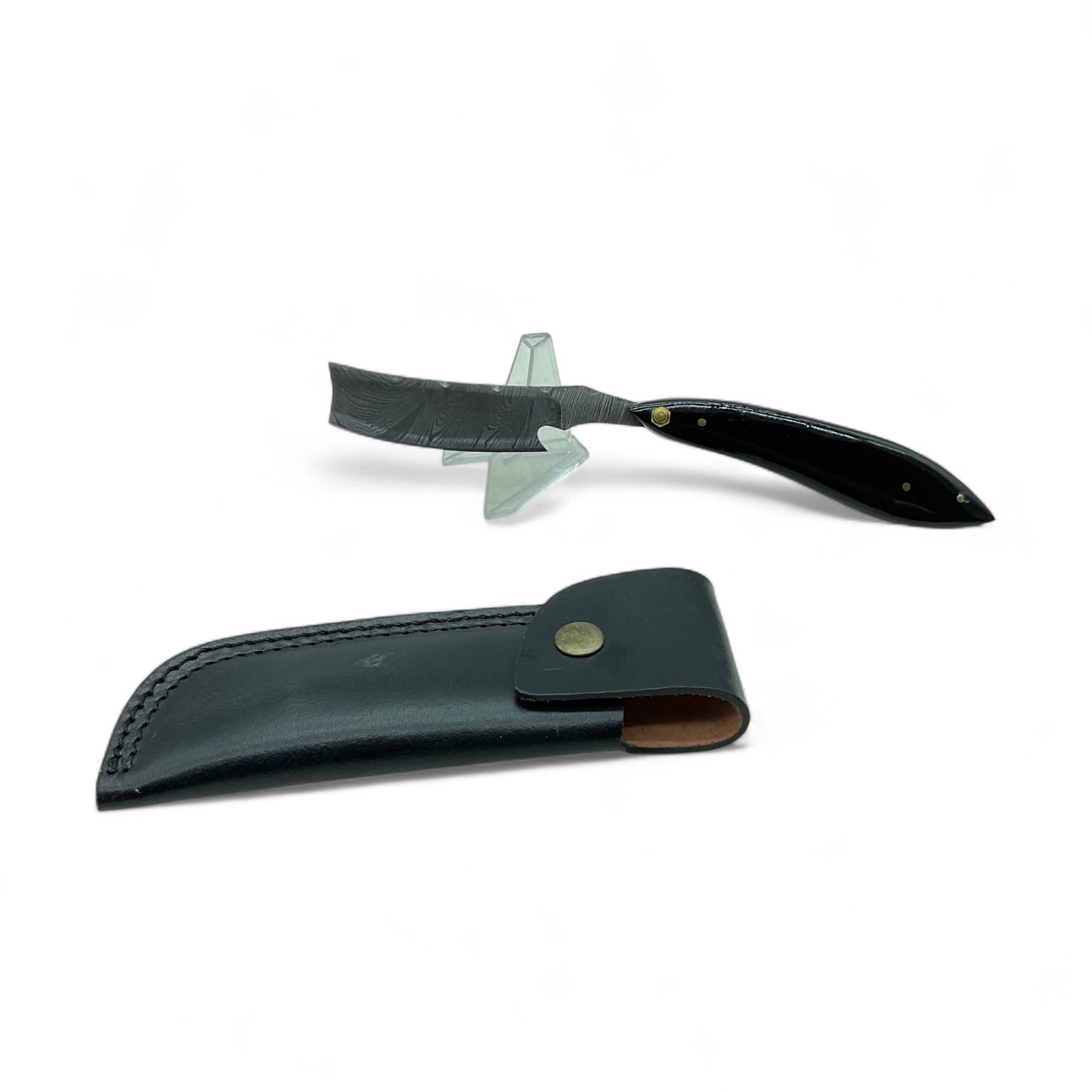 Folding 3" Damascus Blade Razor with Leather Pouch