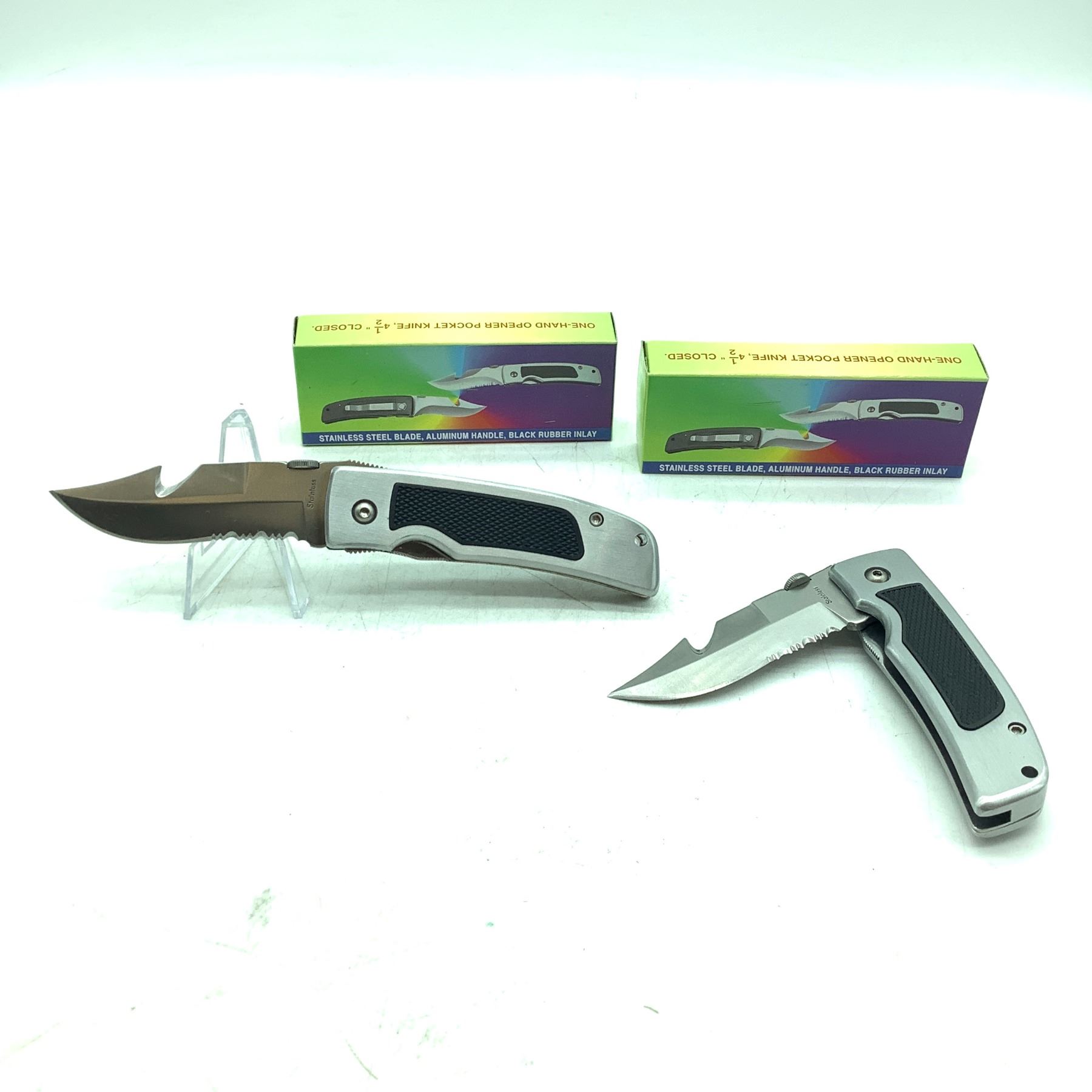 Folding 4" Blade Stainless Pocket Knife with Gut Hook X 2, New