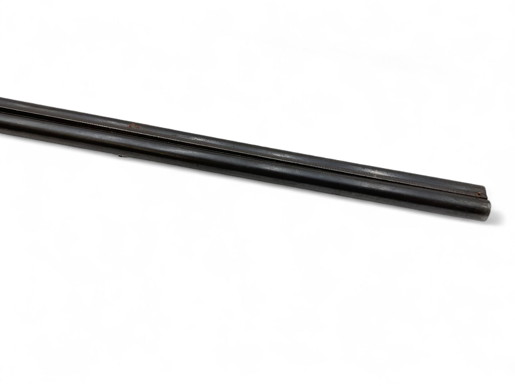 Forest Side By Side Shotgun 12Ga 2.75" Chambers 28" Barrels Wood Stock.  Bead sight; fixed chokes.  Double triggers.  Rear stock cracked and broken and loose.  This is a non-restricted firearm.