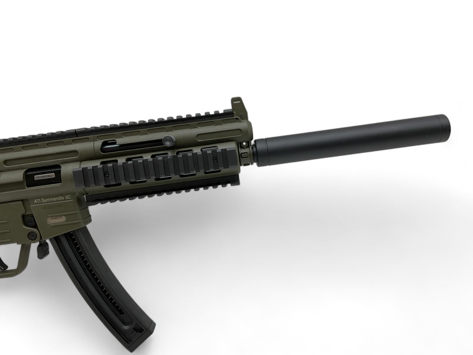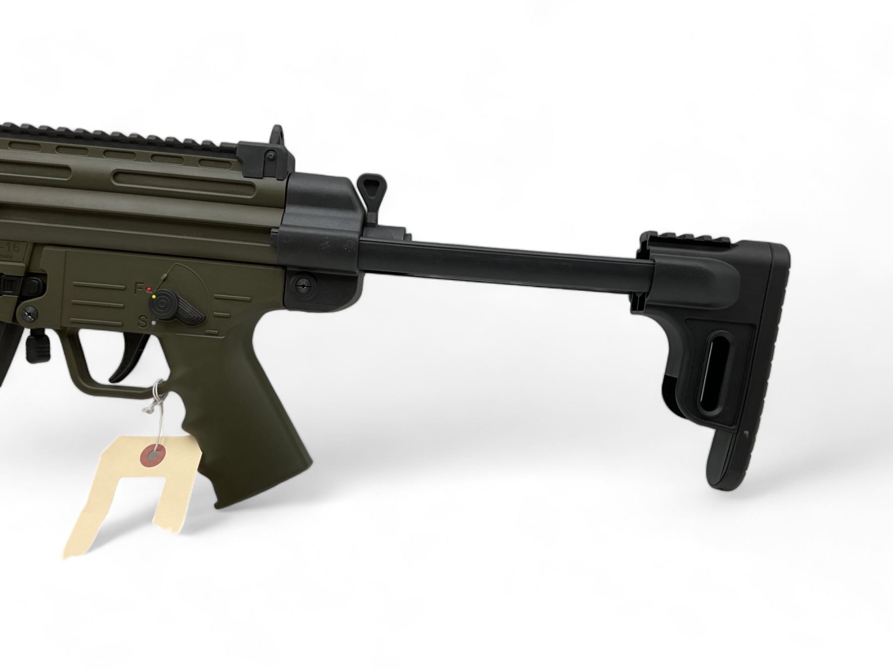 GSG-16 Semi Auto Rifle 22LR 16.25" Barrel ODG Green. Includes one detachable magazine. Factory open sights, adjustable rear stock. This is a non-restricted firearm.