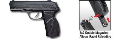 Gamo PT-85 .177 Semi Auto CO2 Pellet Pistol With Blowback Action, New. Rifled barrel, textured grip. Detachable magazine. You must be over 18 years of age to purchase this item.