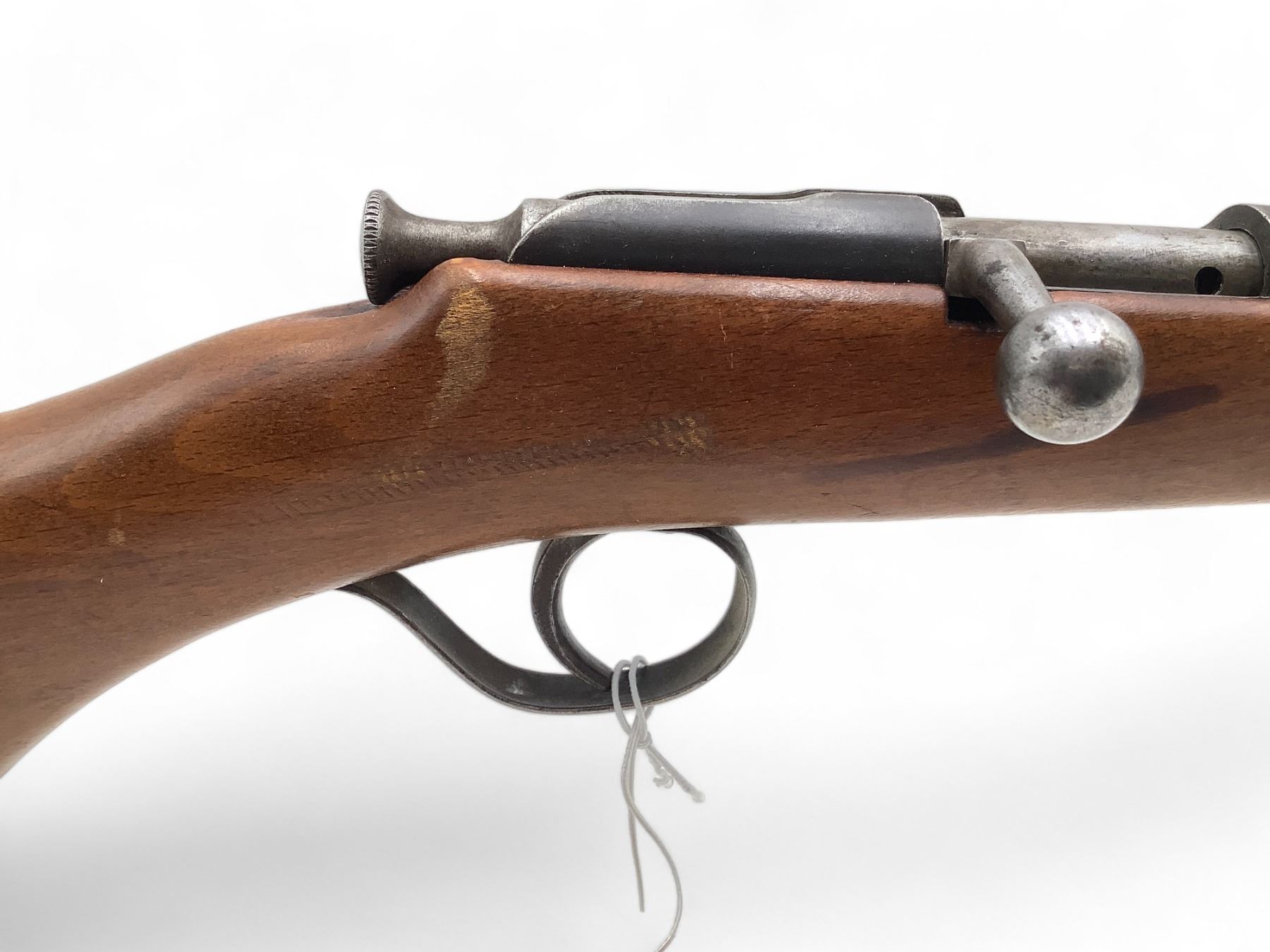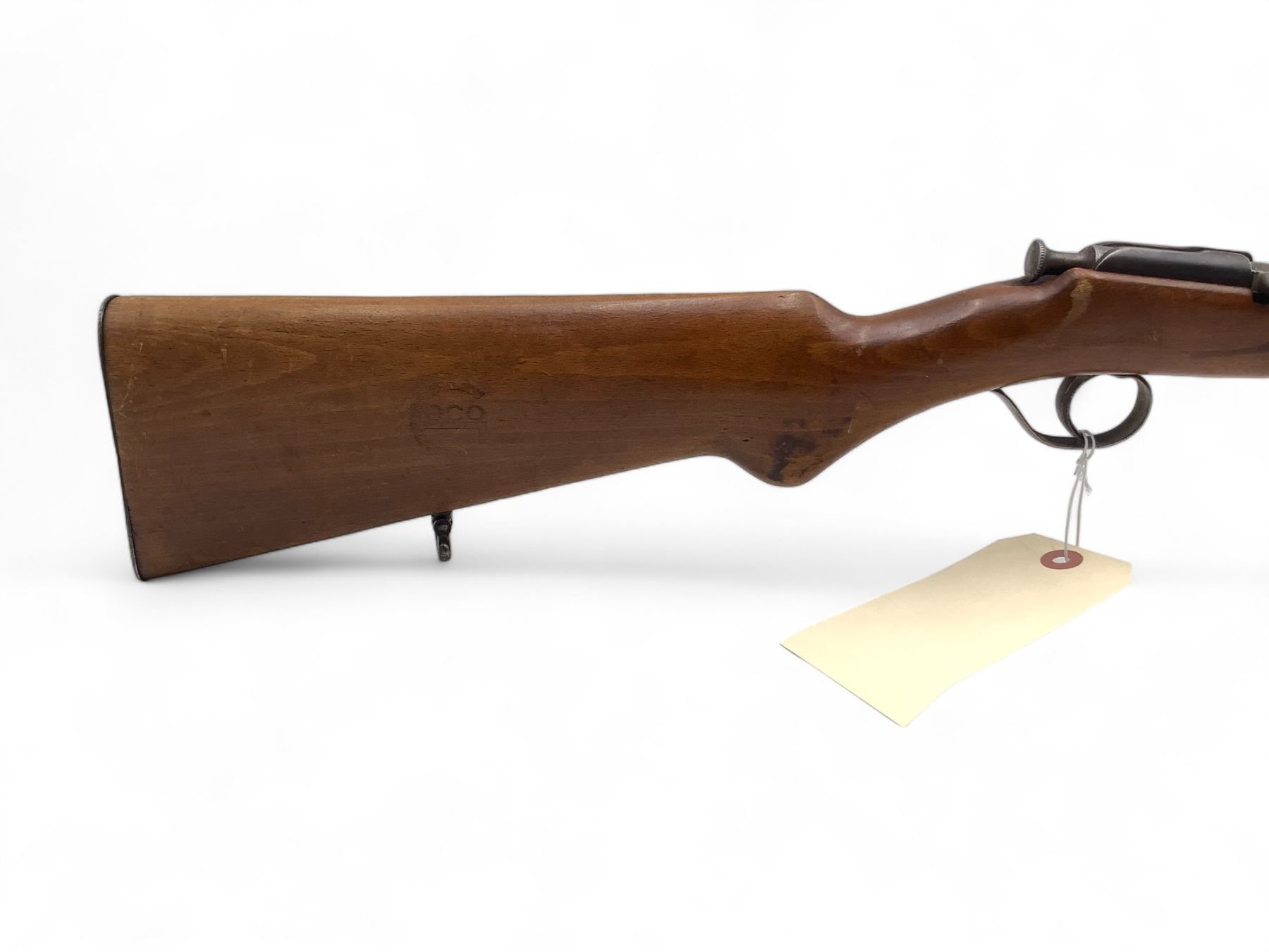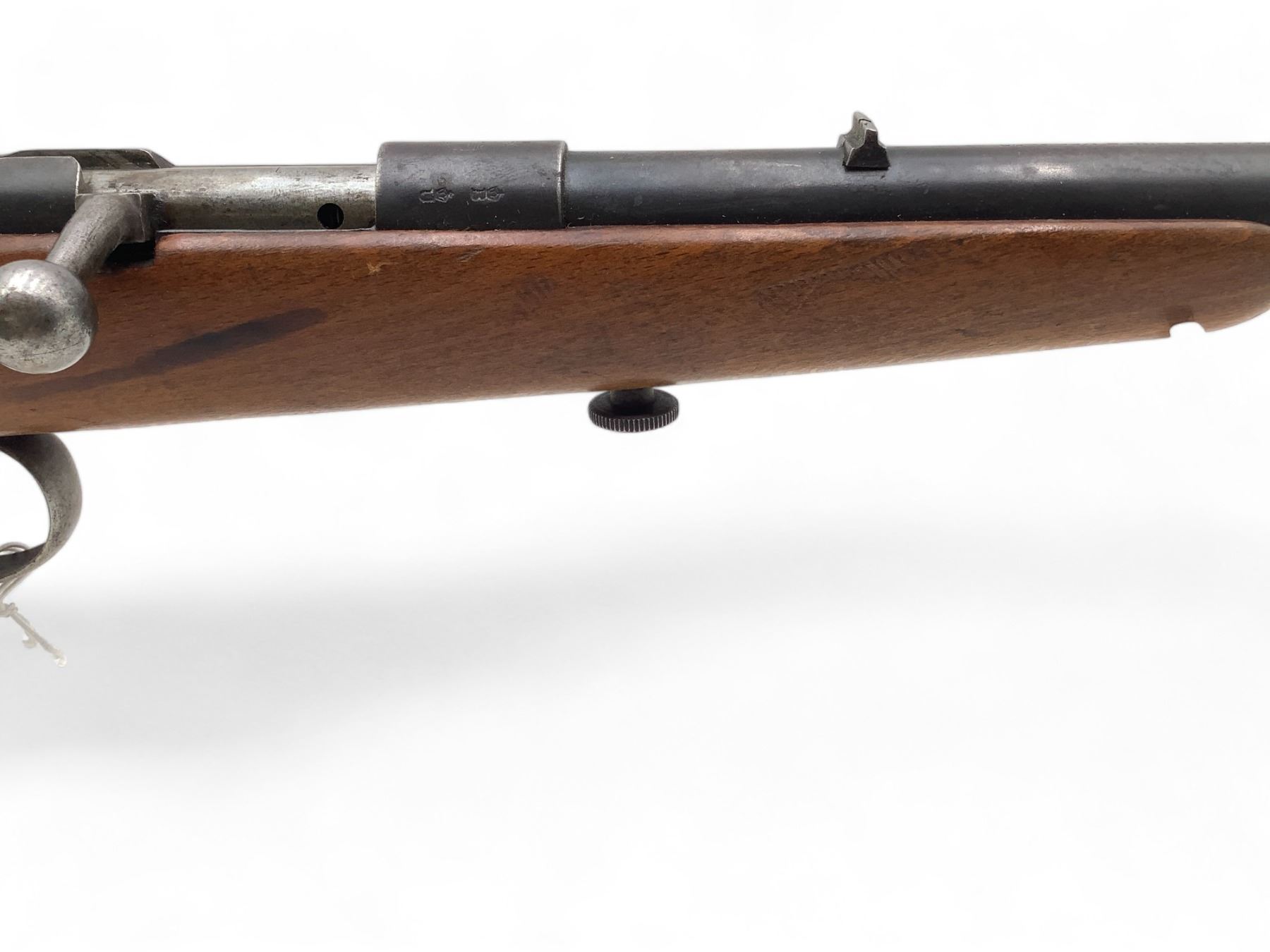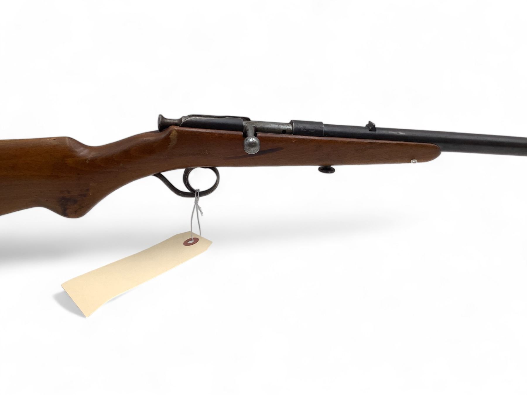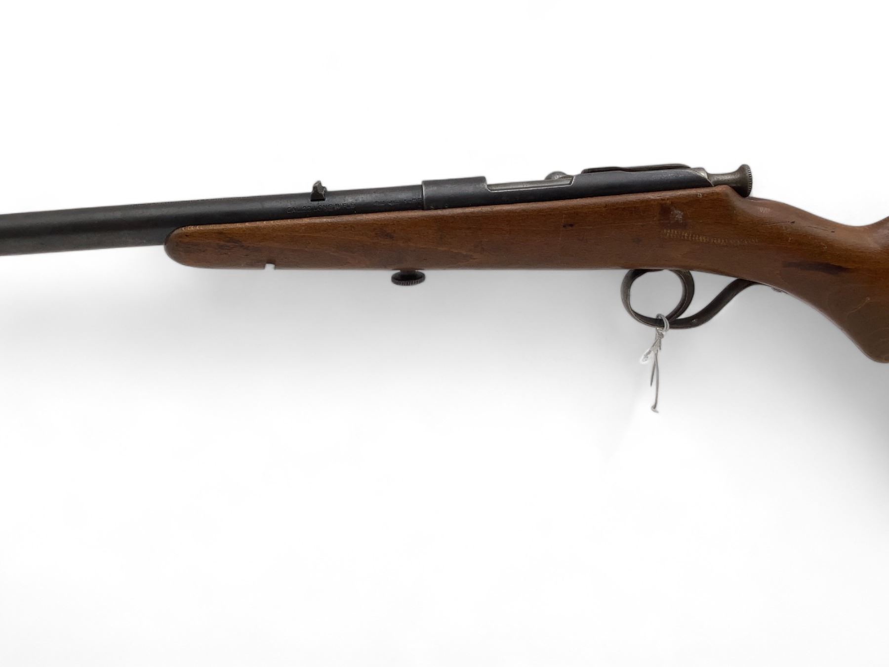Geco Single Shot Rifle 22LR 23" Plugged Barrel Wood Stock. Factory open sights, metal butt plate. Barrel has been welded with a plug. This is a non-restricted firearm.