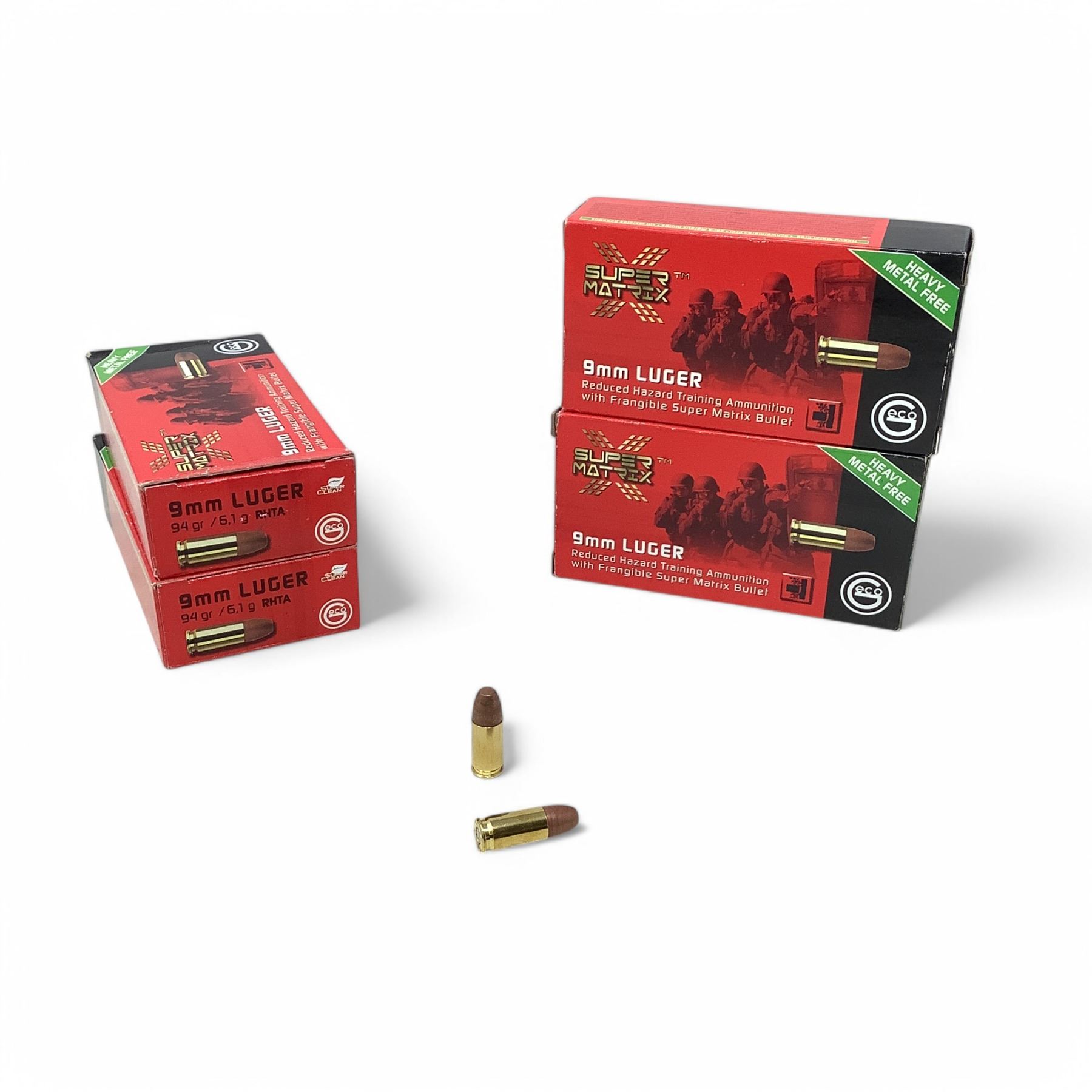 Geco Super Matrix 9mm Luger, 94 Grain Reduced Hazard Training Ammunition, 200 Rounds