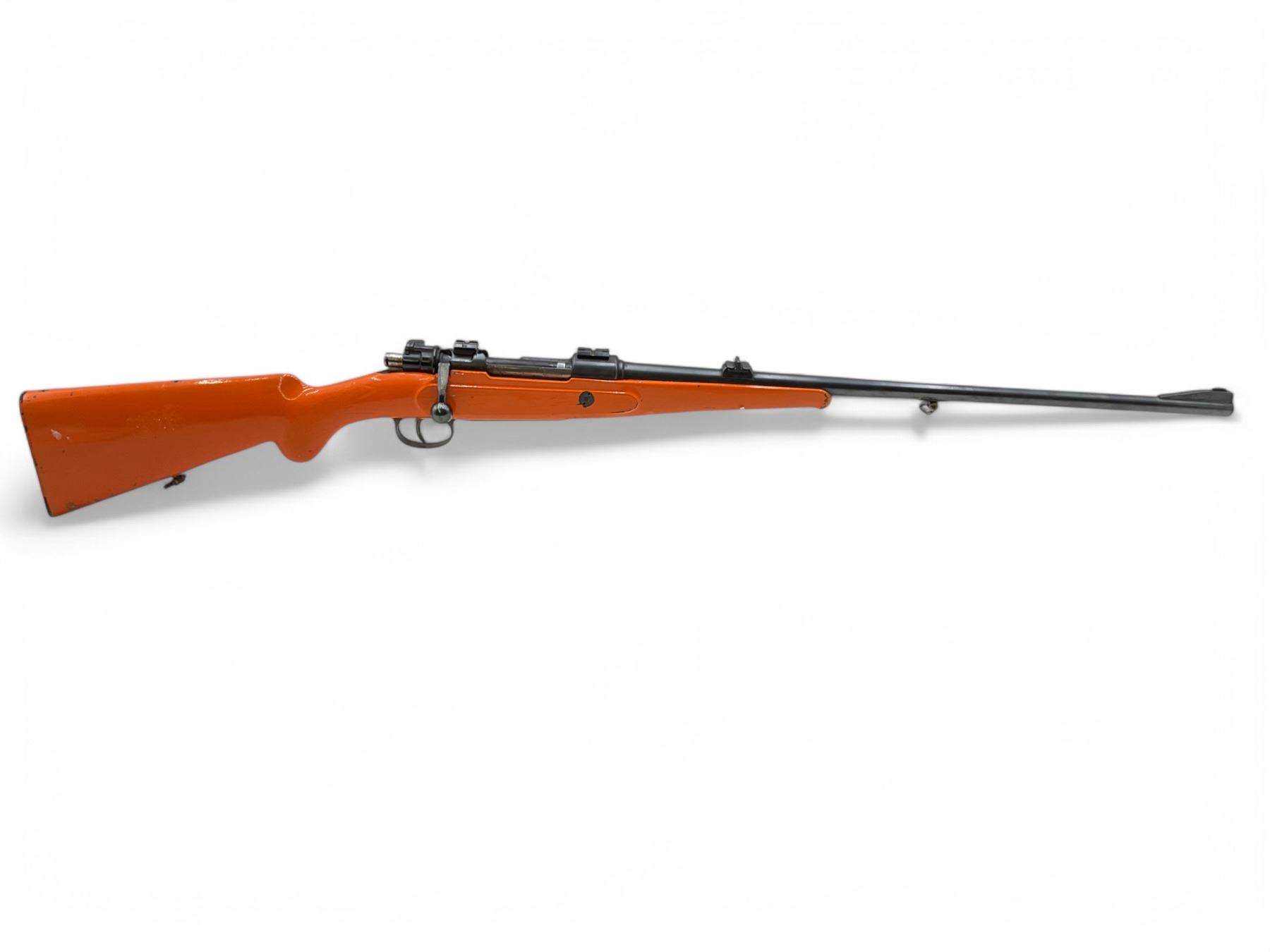 Germania 98 Bolt Action Rifle 9.3X57 24" Barrel Orange Painted Wood Stock. Internal magazine with base plate. Factory open sights. This is a non-restricted firearm.