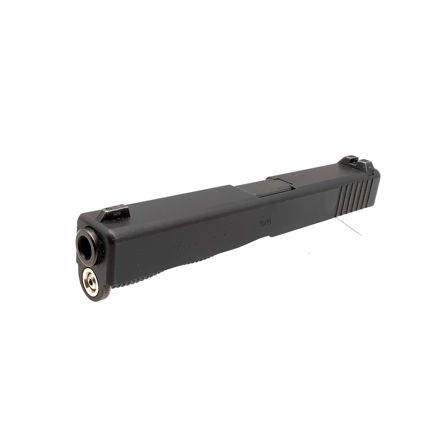 Glock G17 Gen 4 9MM Complete Slide Assembly With Night Sights. This slide has a guide rod adapter and Gen 3 style guide rod and spring. Appears to have been used very little.