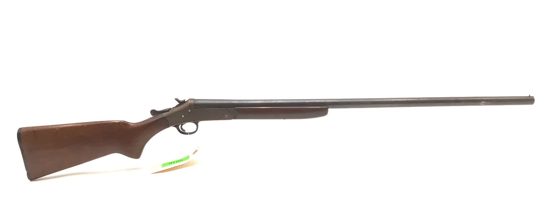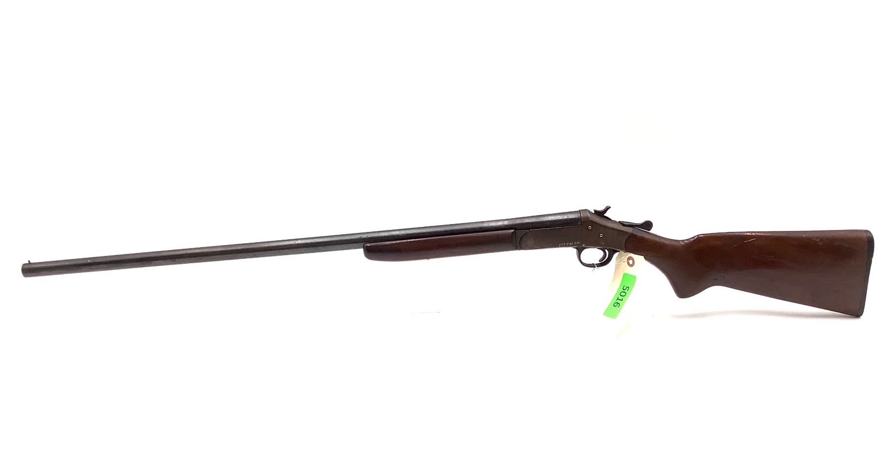 H& R Topper M48 Single Shot 16 Ga Shotgun 30" Barrel. Bead sight. Wood stock has scratches; plastic butt plate present with nicks and chips. Metal finish is worn with some rust present. This is a non-restricted firearm.