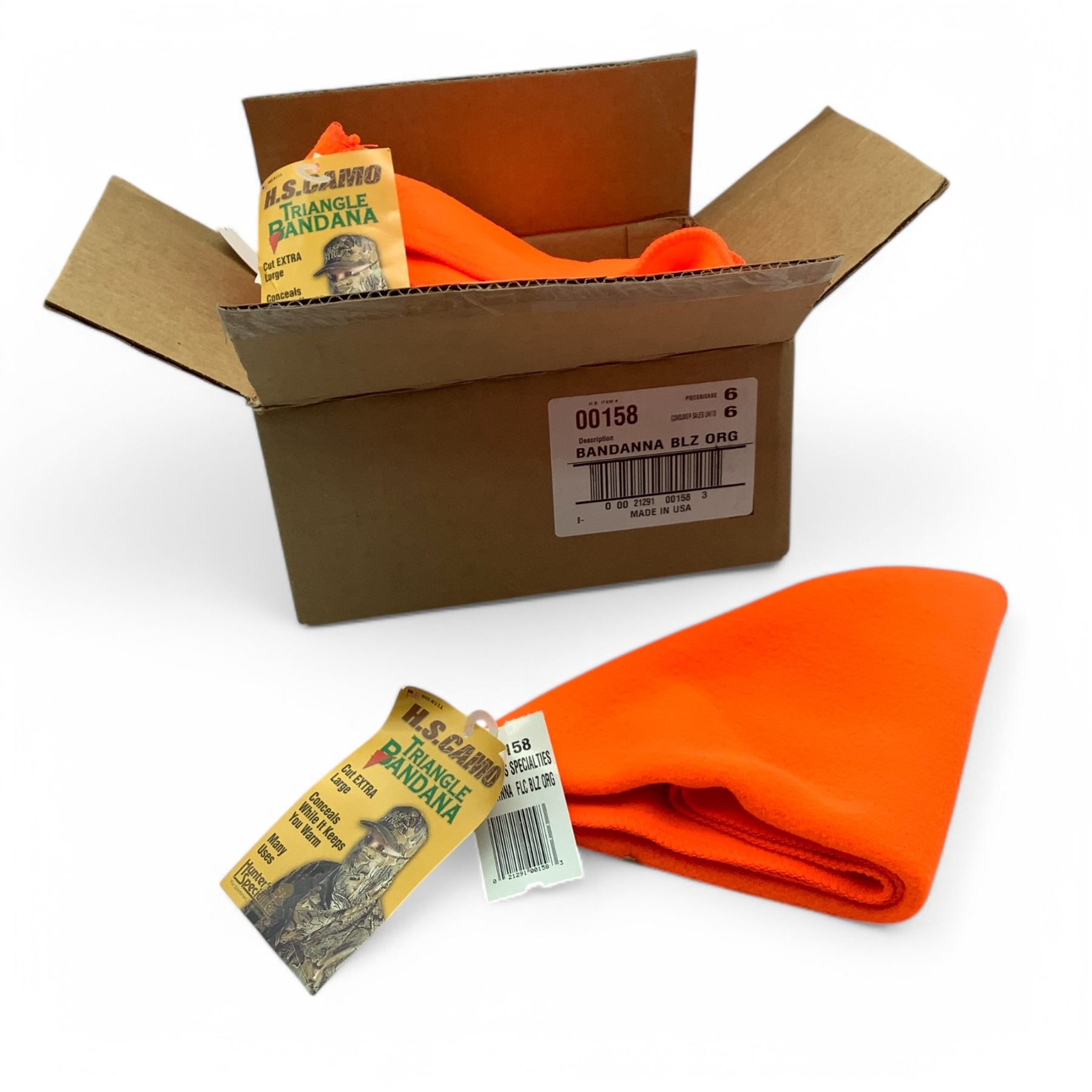 H.S Camo Triangle Fleece Bandana, Cut Extra Large, Blaze Orange X 6 Qty